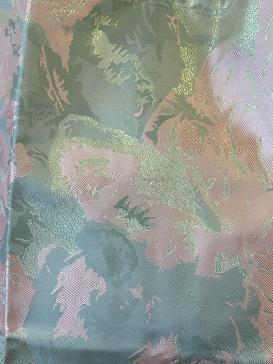 Skuldertaske i brokade resttekstil - grønt og lyserødt mønster