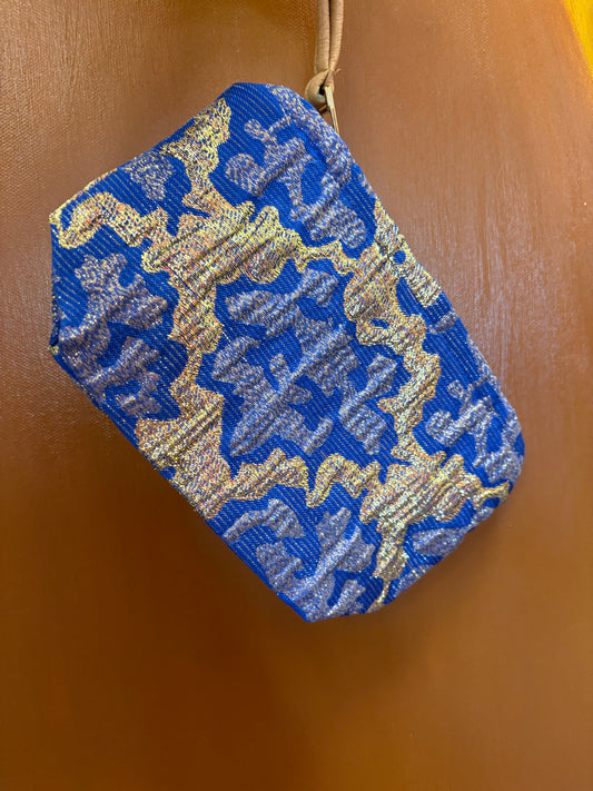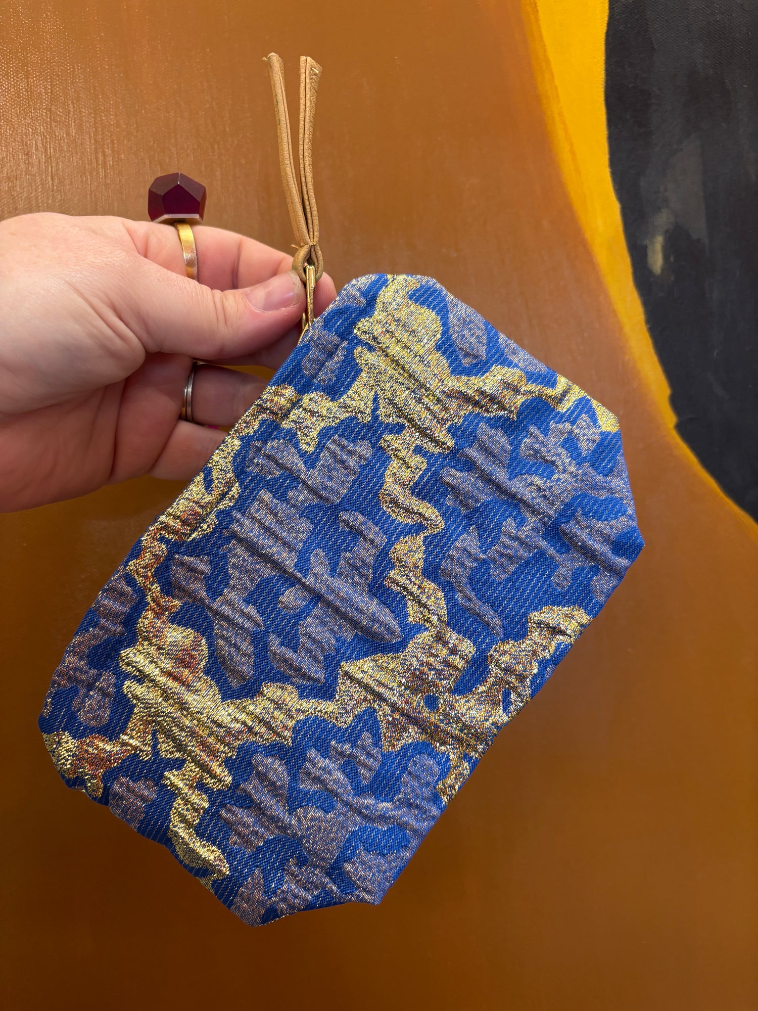 Lille mørkeblå clutch med guld mønster | 18 x 14 cm.