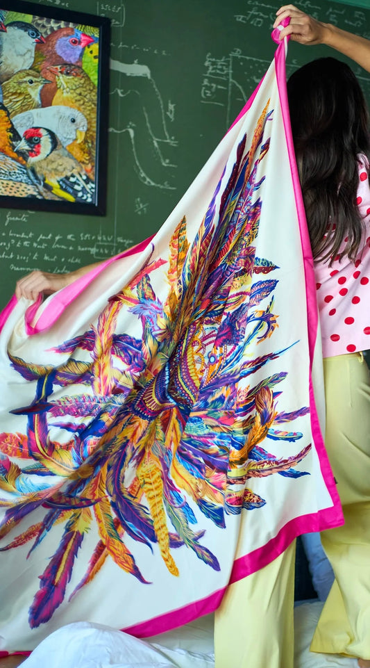 Lyserød tørklæde med små pink hjerter i bomuld / silke