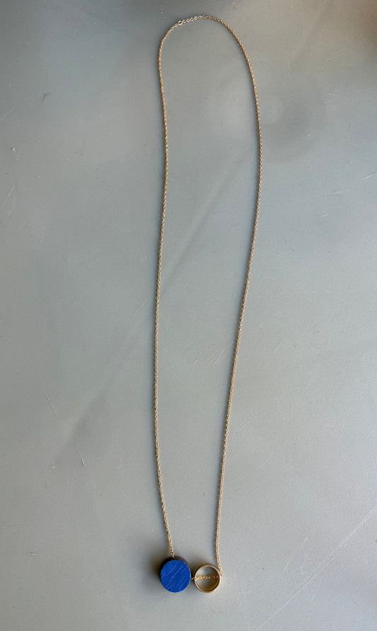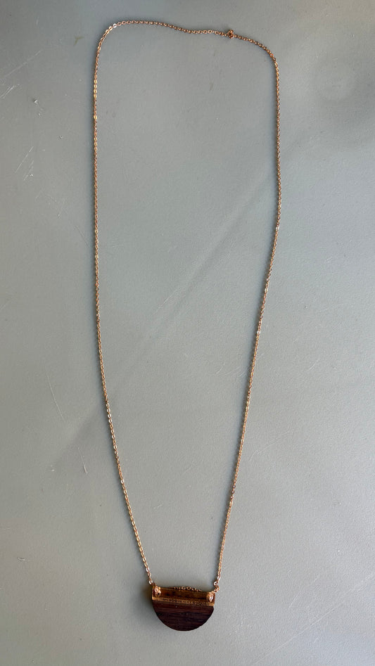 Halskæde med træ- og forgyldt vedhæng