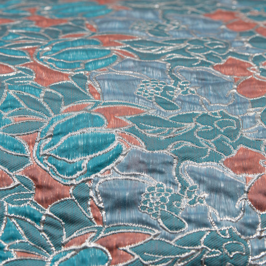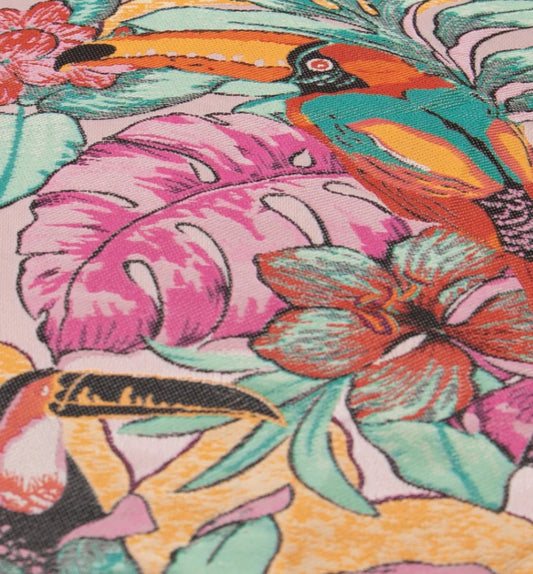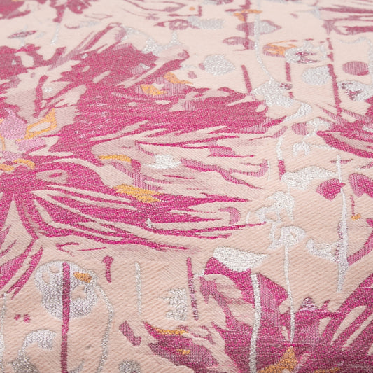 Pude med grønne blade og gyldne blomster, på en lilla baggrund