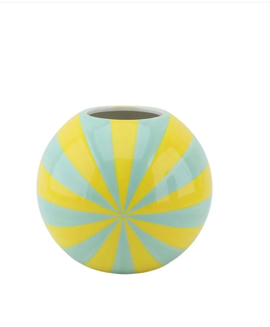 Bolchestribet keramik vase gul / mint mindst