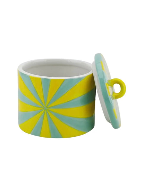 Bolchestriber keramik rukke i gul / mint grøn farve, mindst