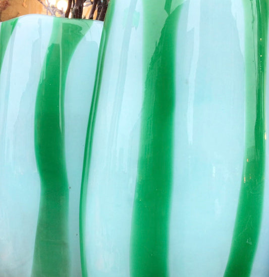 Stor blå og grøn stribet vase