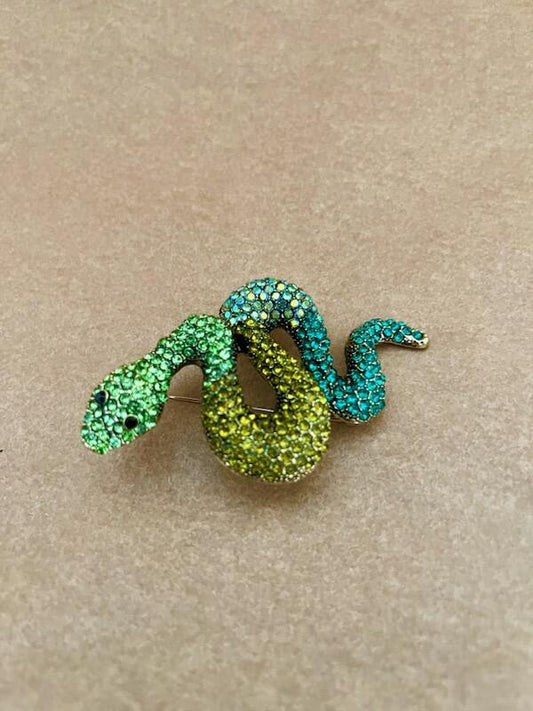 Stor slange broche i grønne nuancer