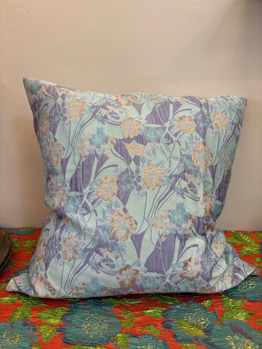 Stort pudebetræk i lyseblå og lila med sølv blomster