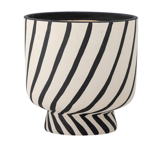 Urtepotte i mat hvid glasur med sorte striber