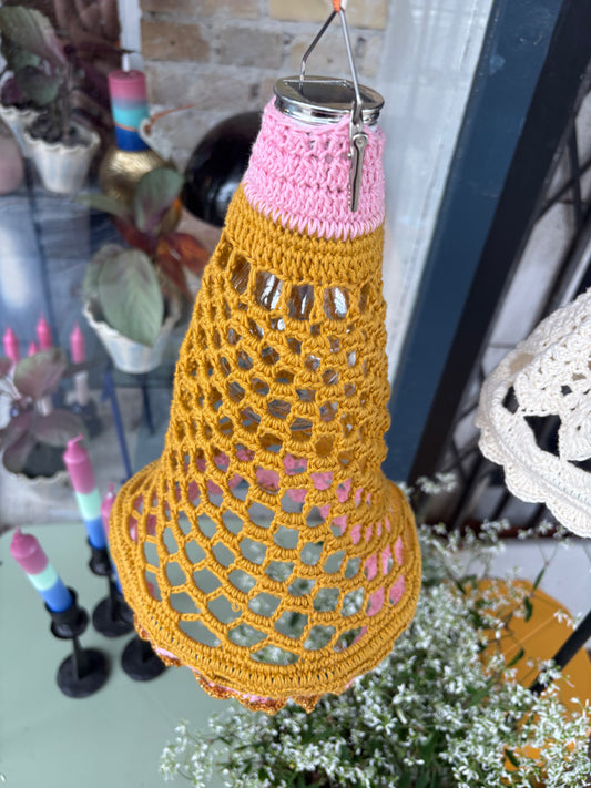 Unika led lampe i karry gul og lyserød