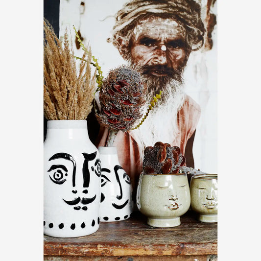 Urtepotte med ansigt