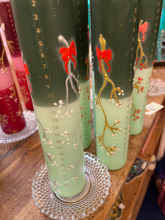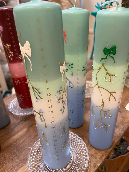 Kalenderlys støvet grøn, mintgrøn, hvid og lysblå