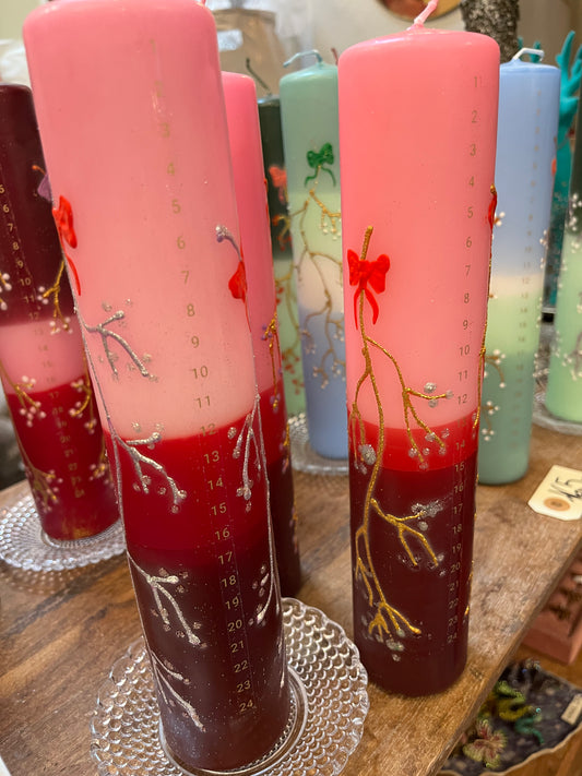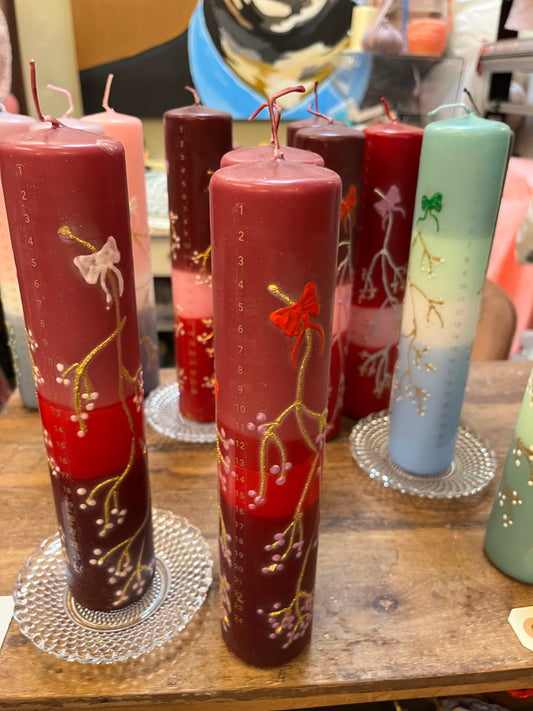 Kalenderlys rouge, klassisk rød og mørk bodaux