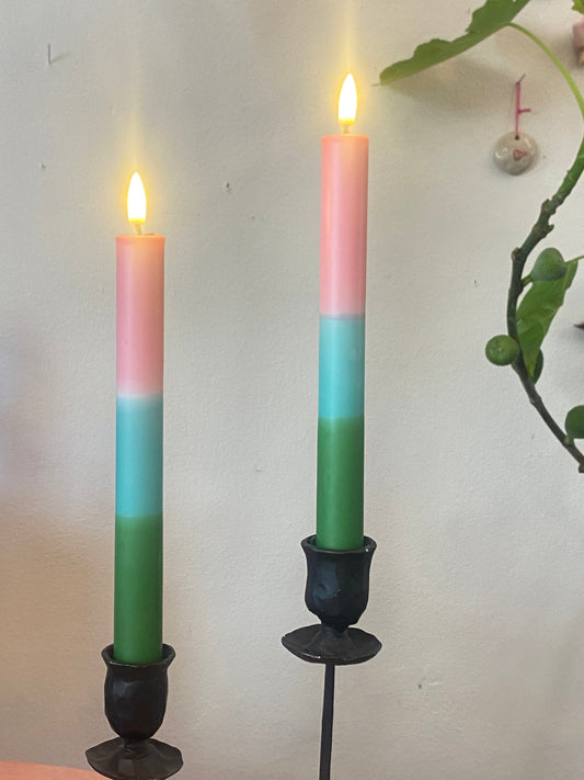 Her ser du et udvalg af vores håndfarvet led stagelys der måler 2,2x24cm.