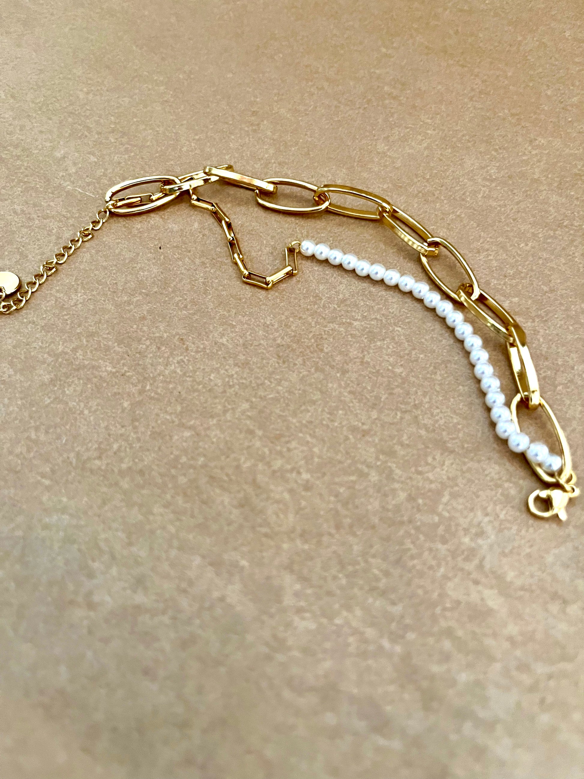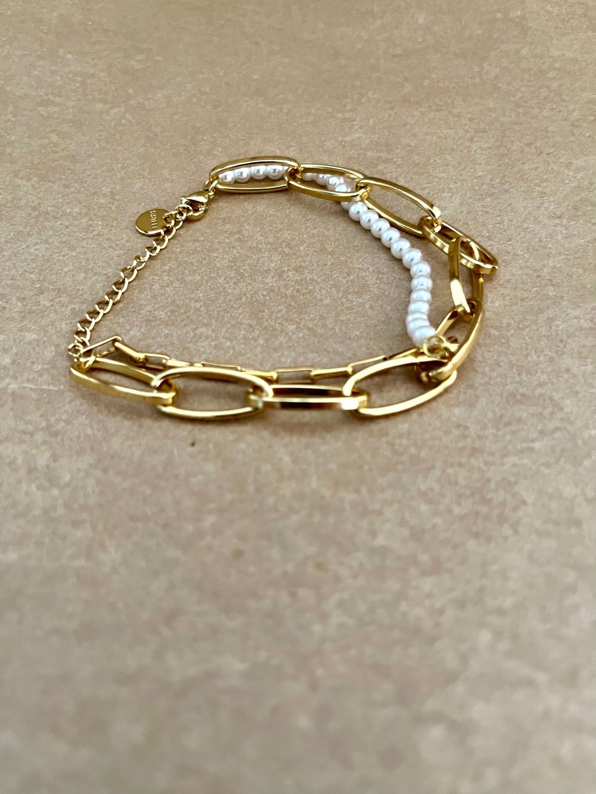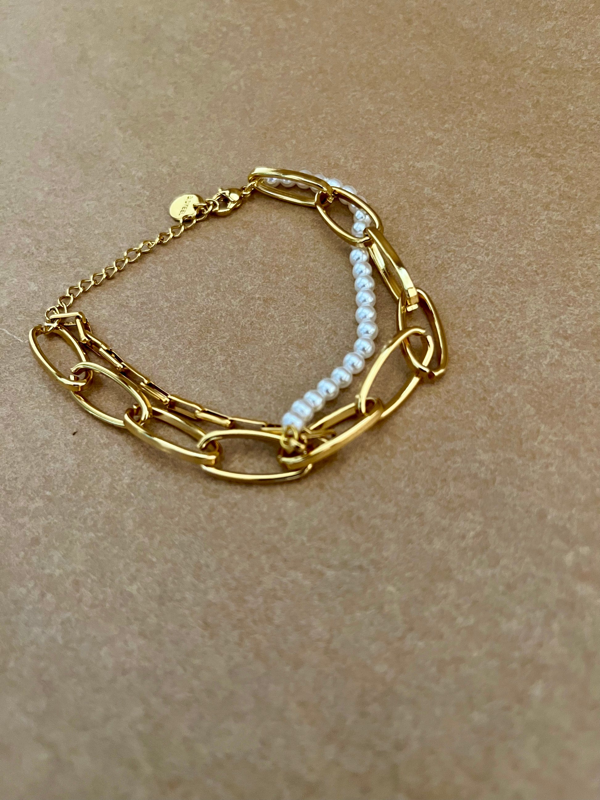 Armbåndet er rustfrit stål med 18 karat forgyldning.