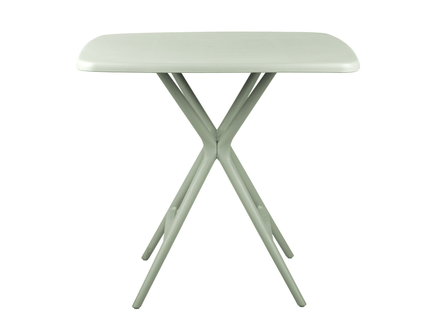 Fedt bord i lækker støvet grøn farve. Bordet er lavet i kraftigt formstøbt plastik og kan derfor også bruges udenfor.