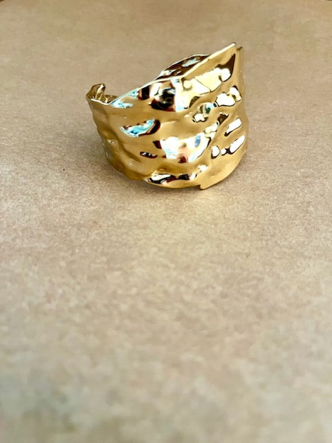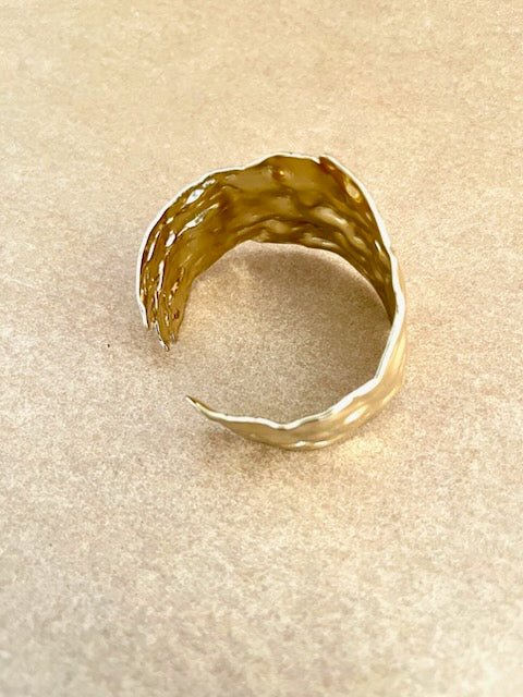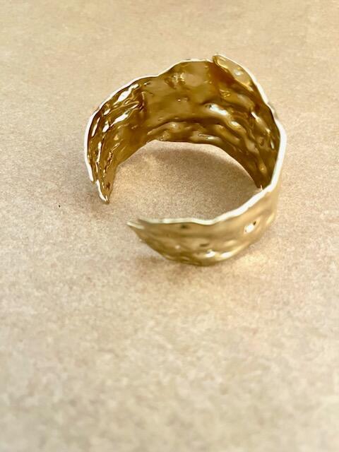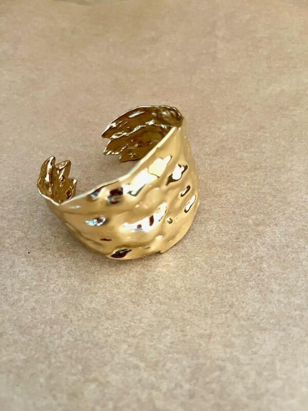 Lækkert bredt armbånd med tekstur. Armbåndet er lavet i rustfritstål med 14 karat forgyldning. Elegant til hverdag eller fest.
