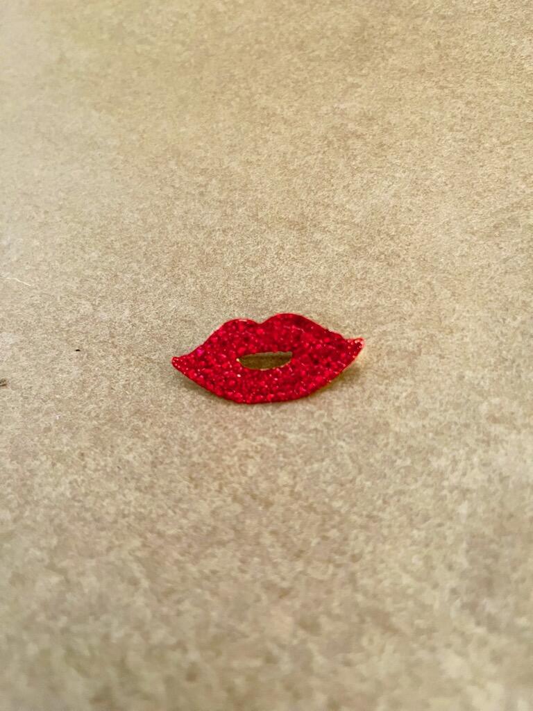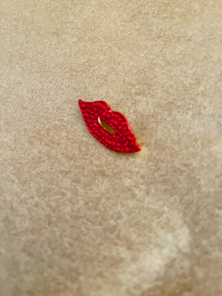 Skønneste lille broche formet som røde læber med rhinsten. Perfekt til at pifte dit outfit op i hverdagen eller til fest.