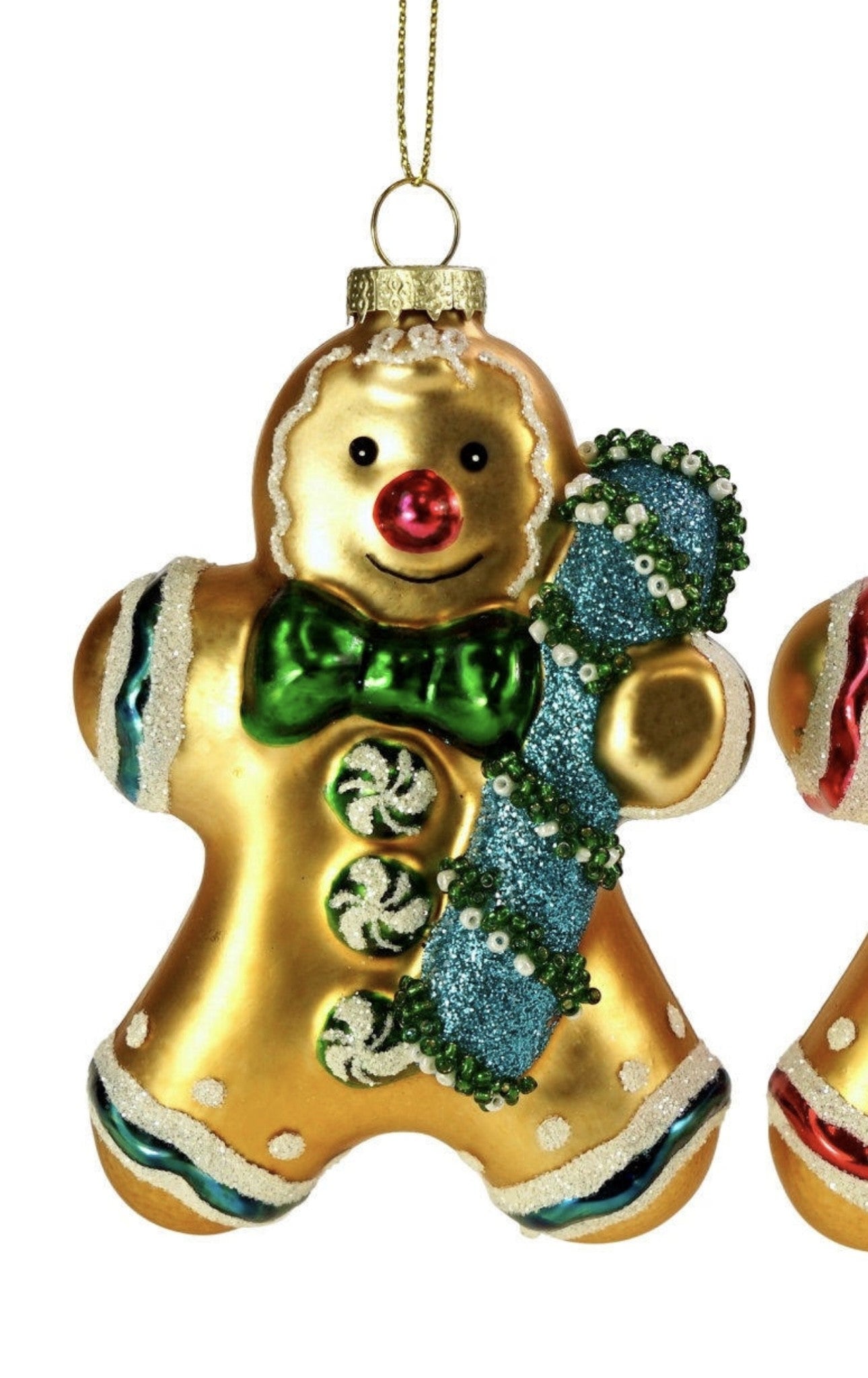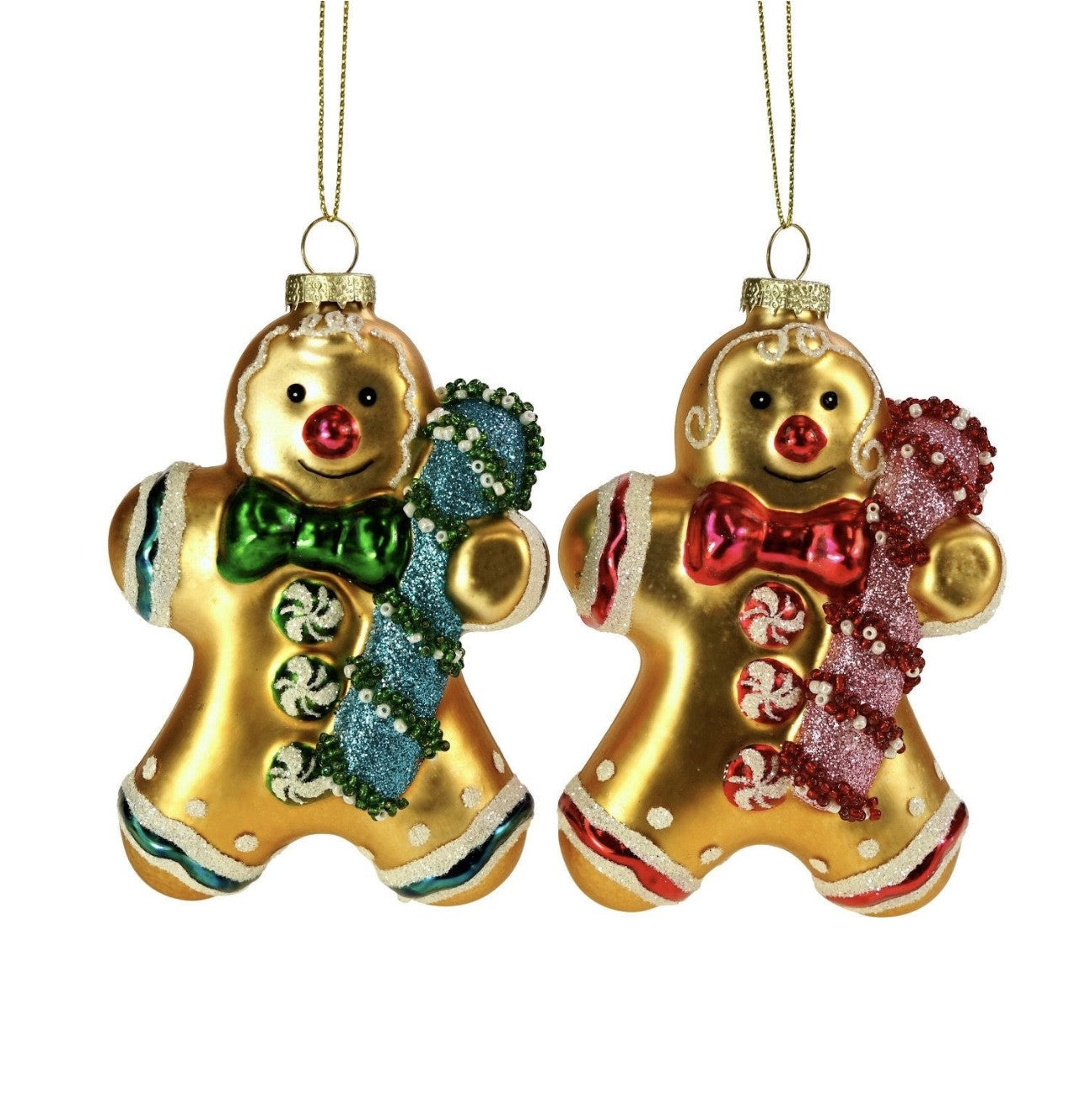 Skønne brunkage mand / dame / person i glas med enten grøn eller rød fløjfe, med ophæng til juletræet.