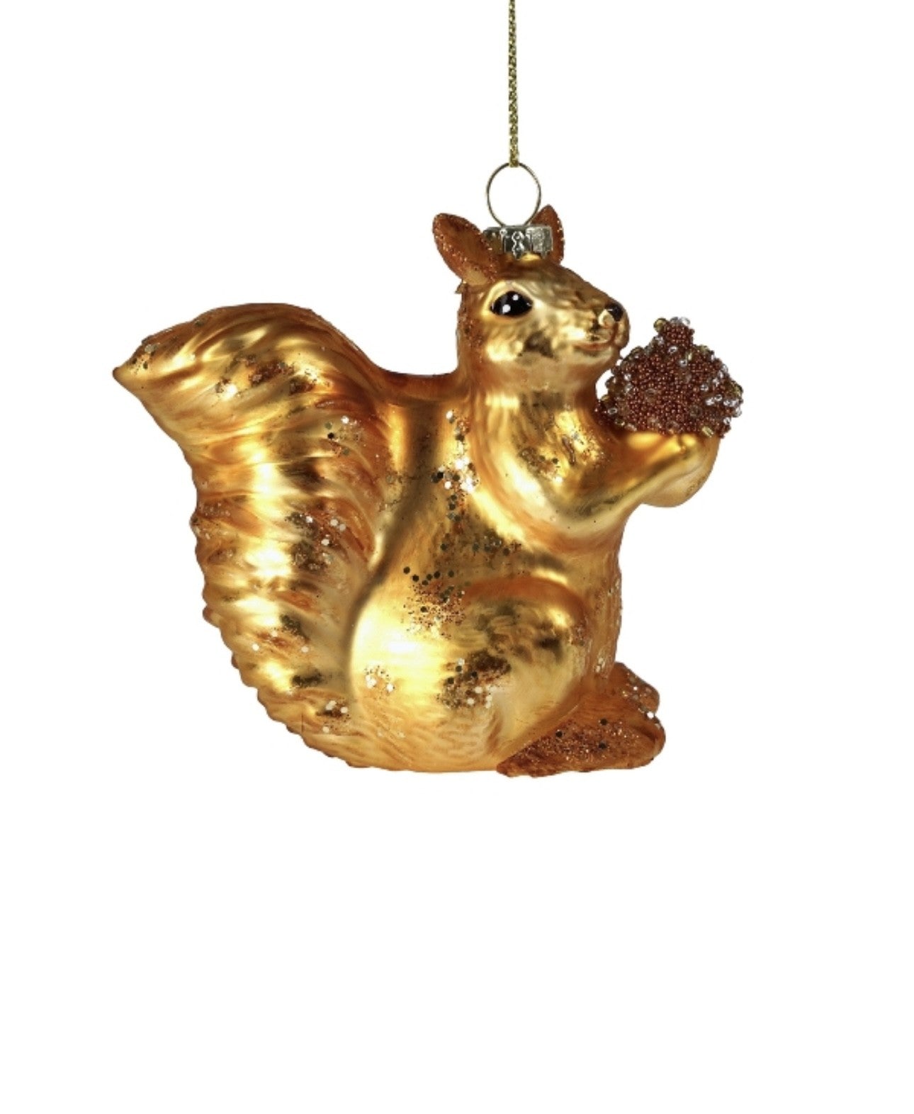 Skønneste egern i glas med agern i perler og glimt i øjet.