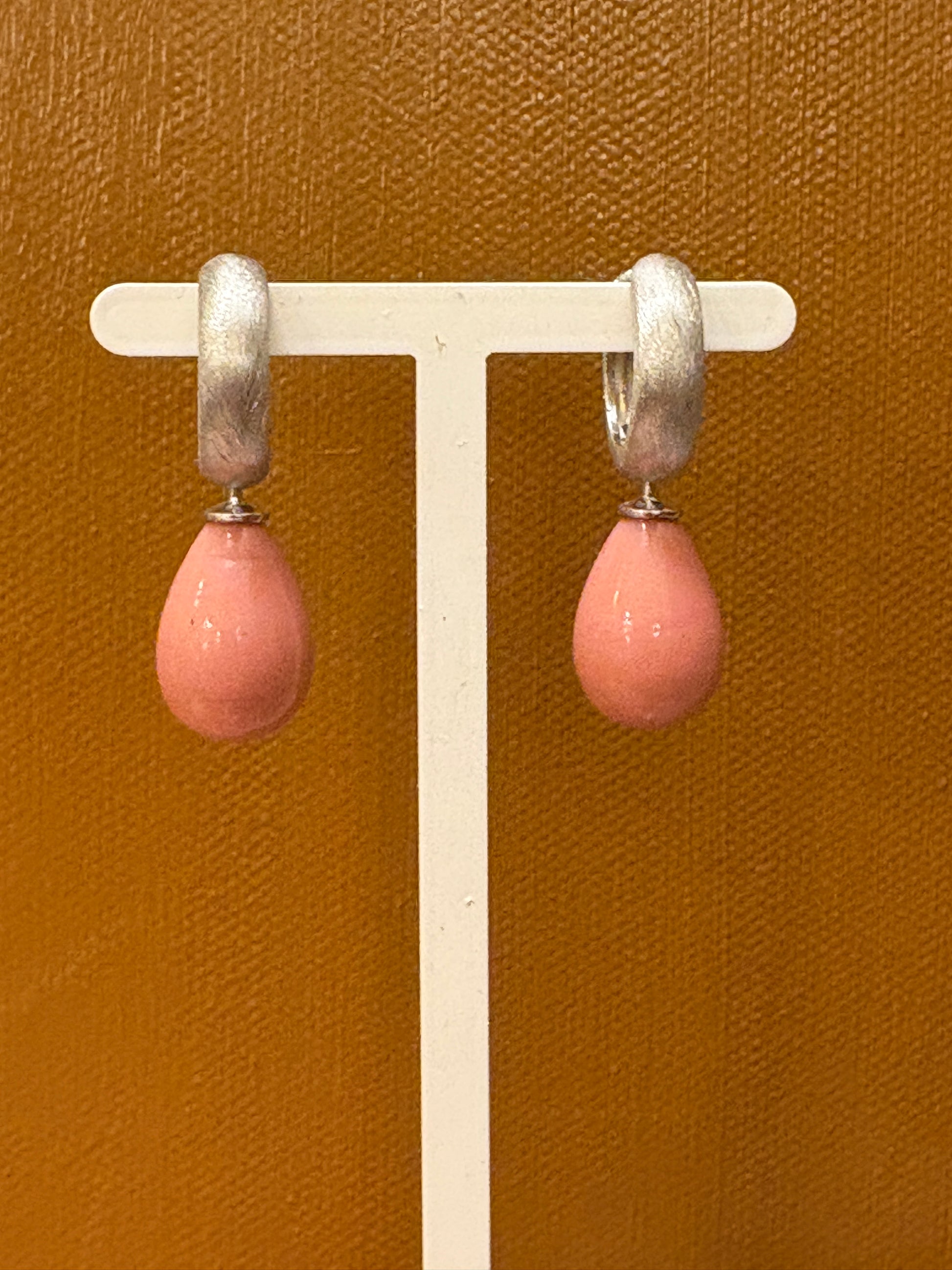 Gammel rosa glasdråbe vedhæng sølv top 16x11 mm