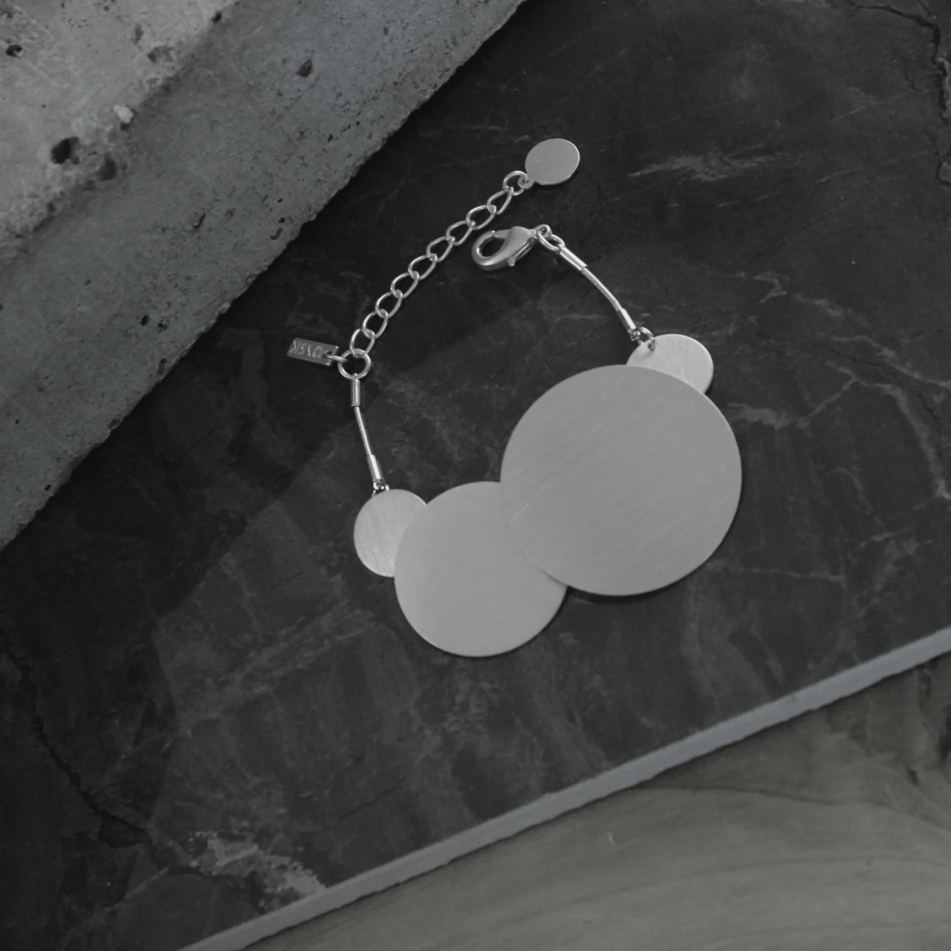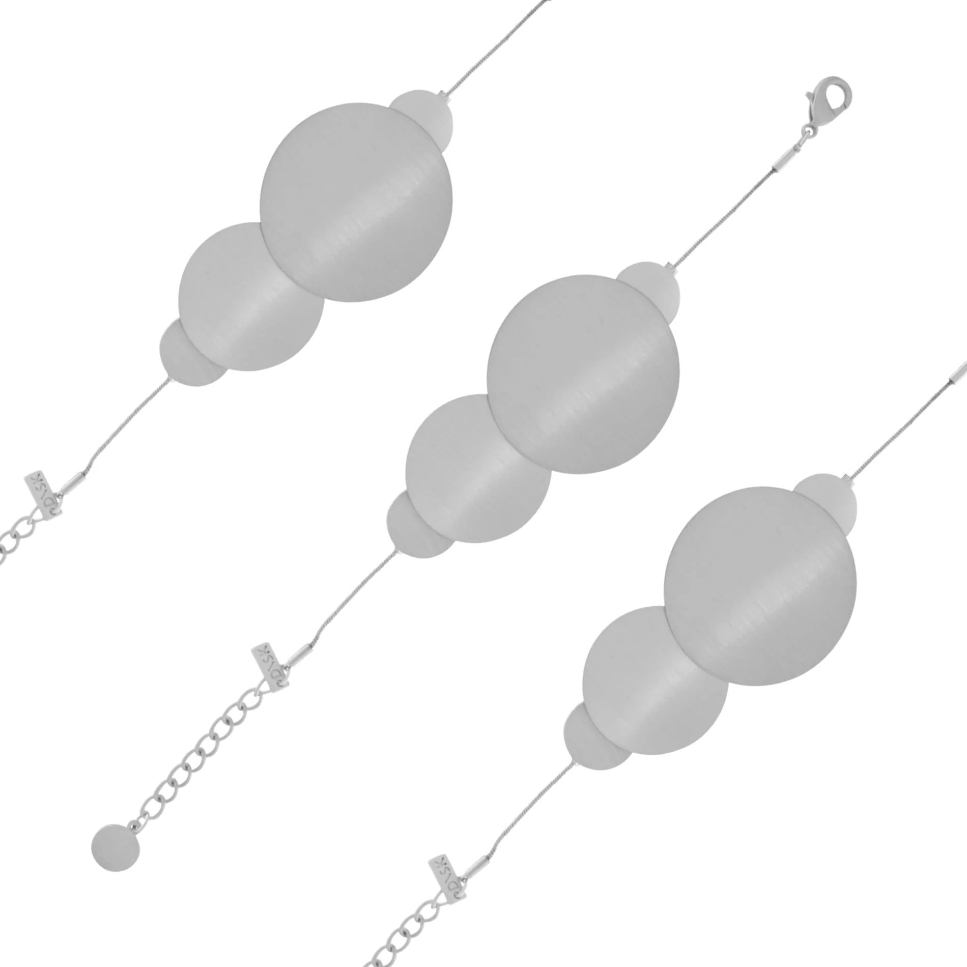Det er lavet i kirurgisk stål, med en vandfast forsølvning. Armbåndet kan justeres, og er smukt både til hverdag og fest.