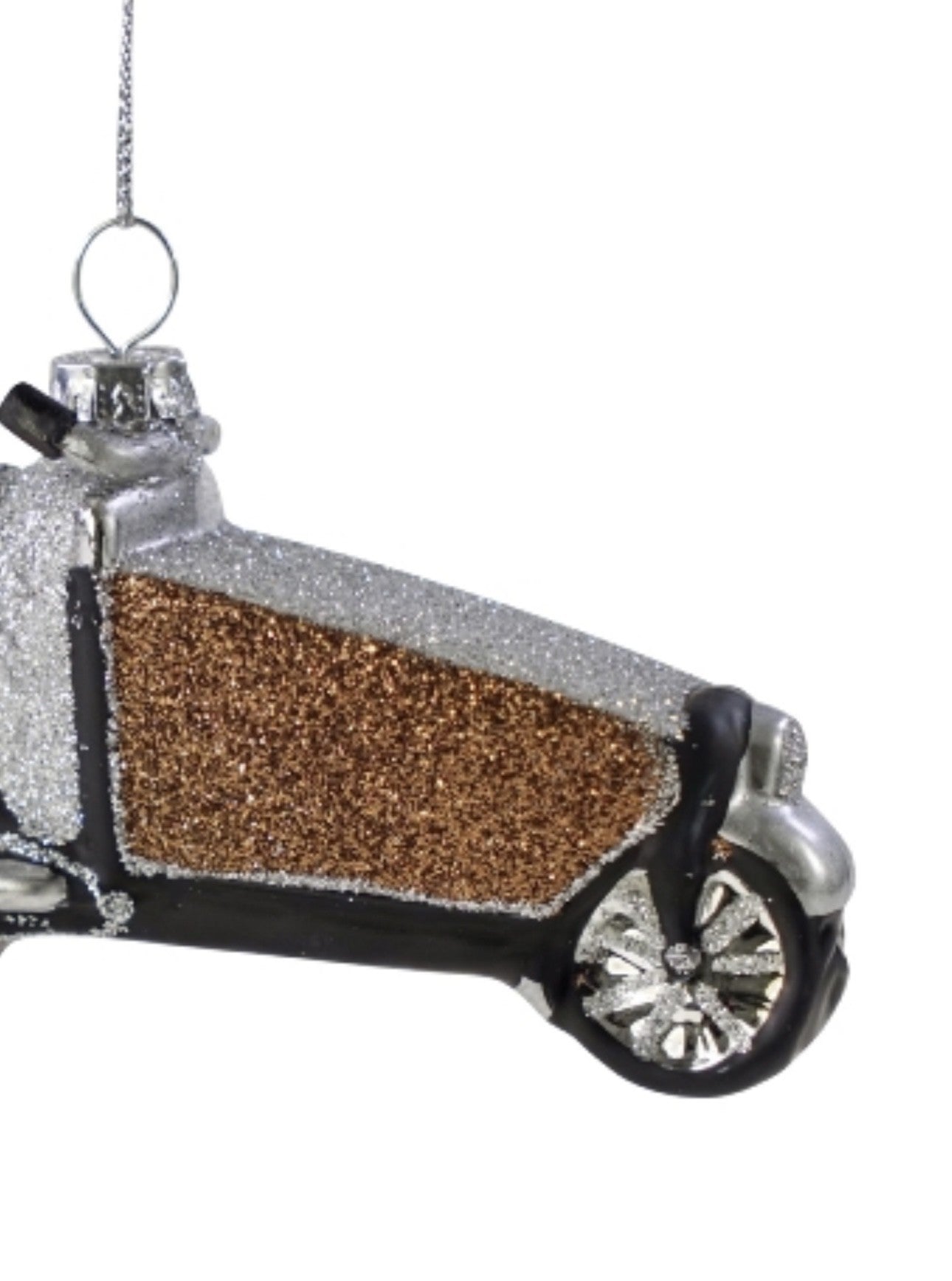 Skøn ladcykel i glas, fyldt med glimmer og i den fedeste retro vibes.