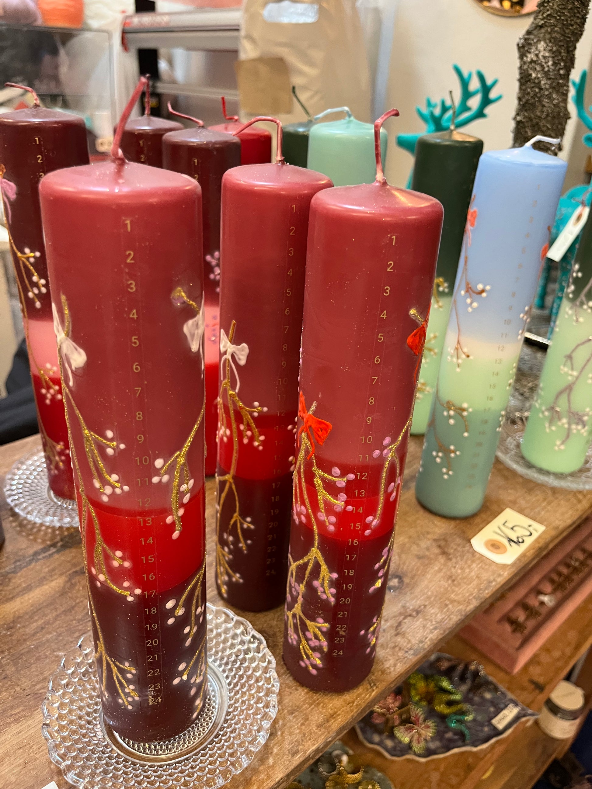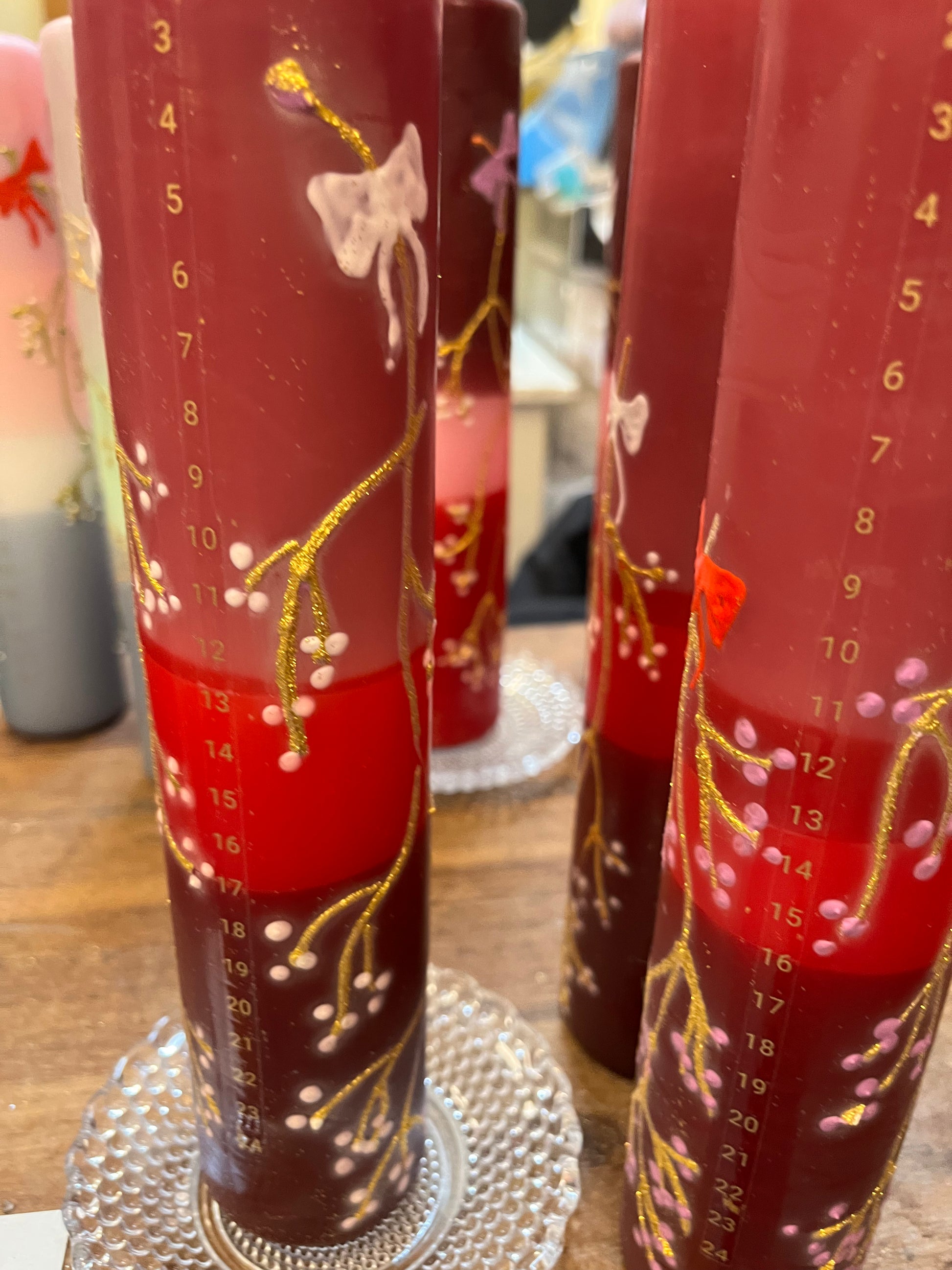 Kalenderlys rouge, klassisk rød og mørk bodaux