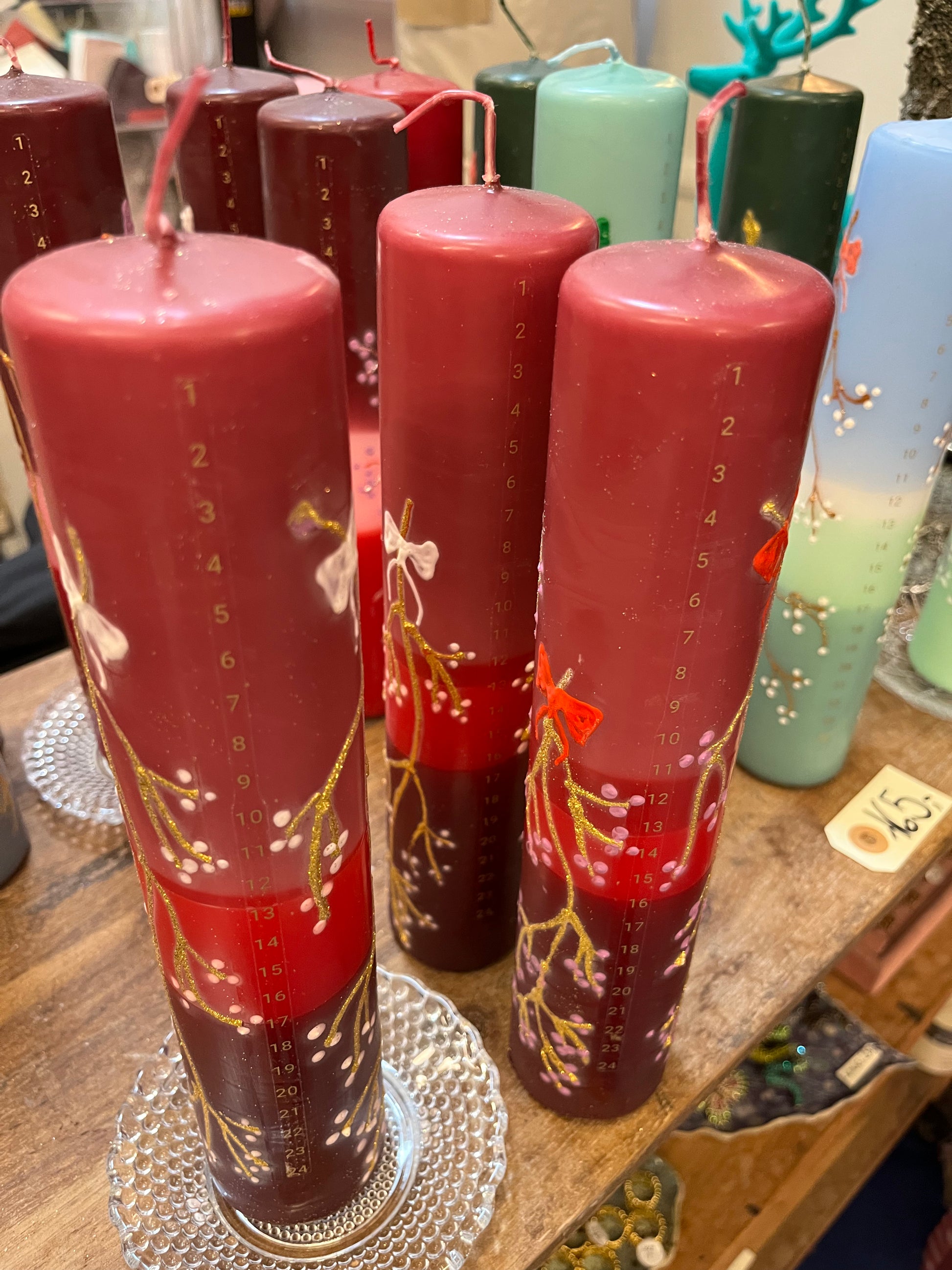 Stine laver hvert år et nyt design og i år 2025, er det glimmer, mistelten og sløjfer der sætter prikken over iét på årets kalenderlys.