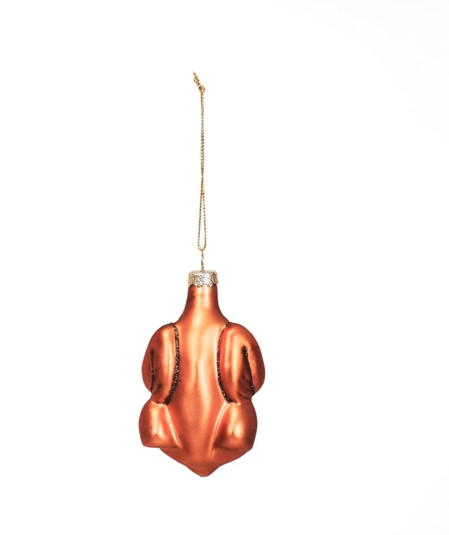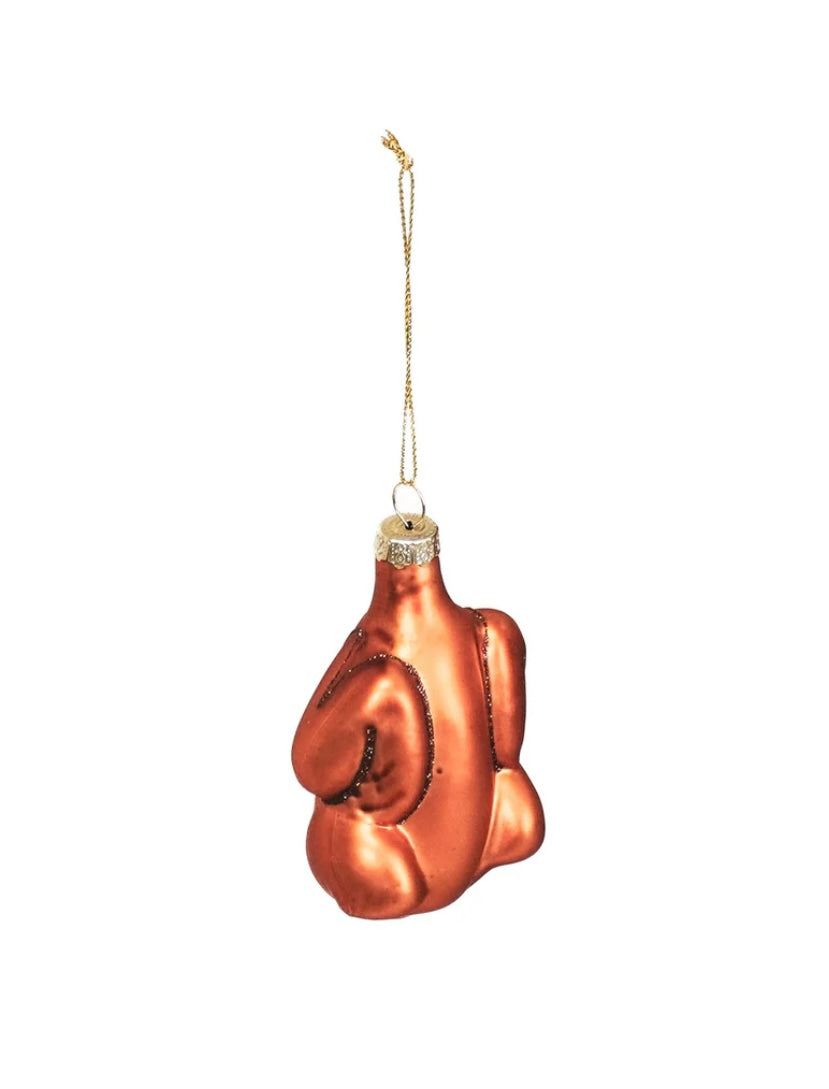 Kalkun ophæng i glas, tilføjet lidt glimmer, så du kan skade de helt egen julestemning.