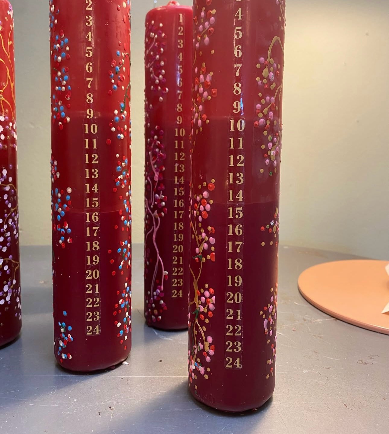 - materialer til dit egen kalenderlys, samt 4 kronelys, som du evn kan bruge som adventslys.