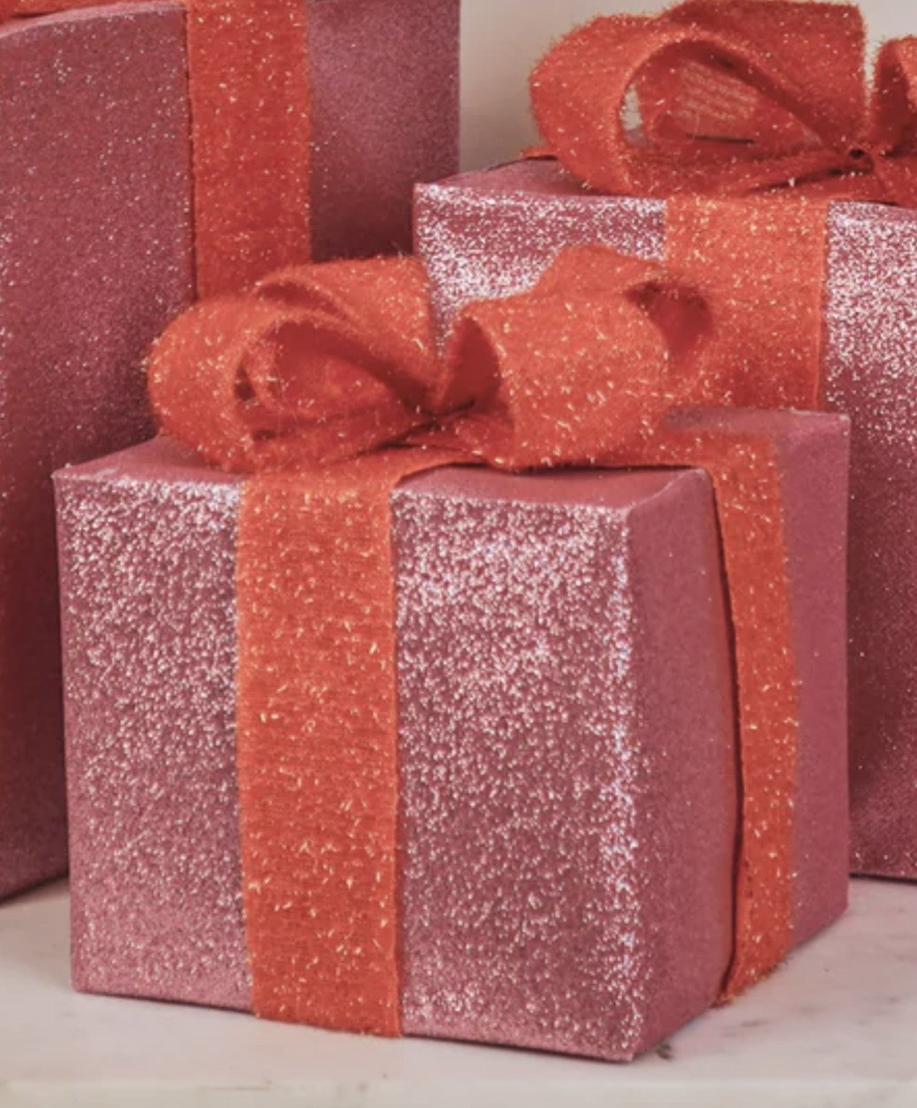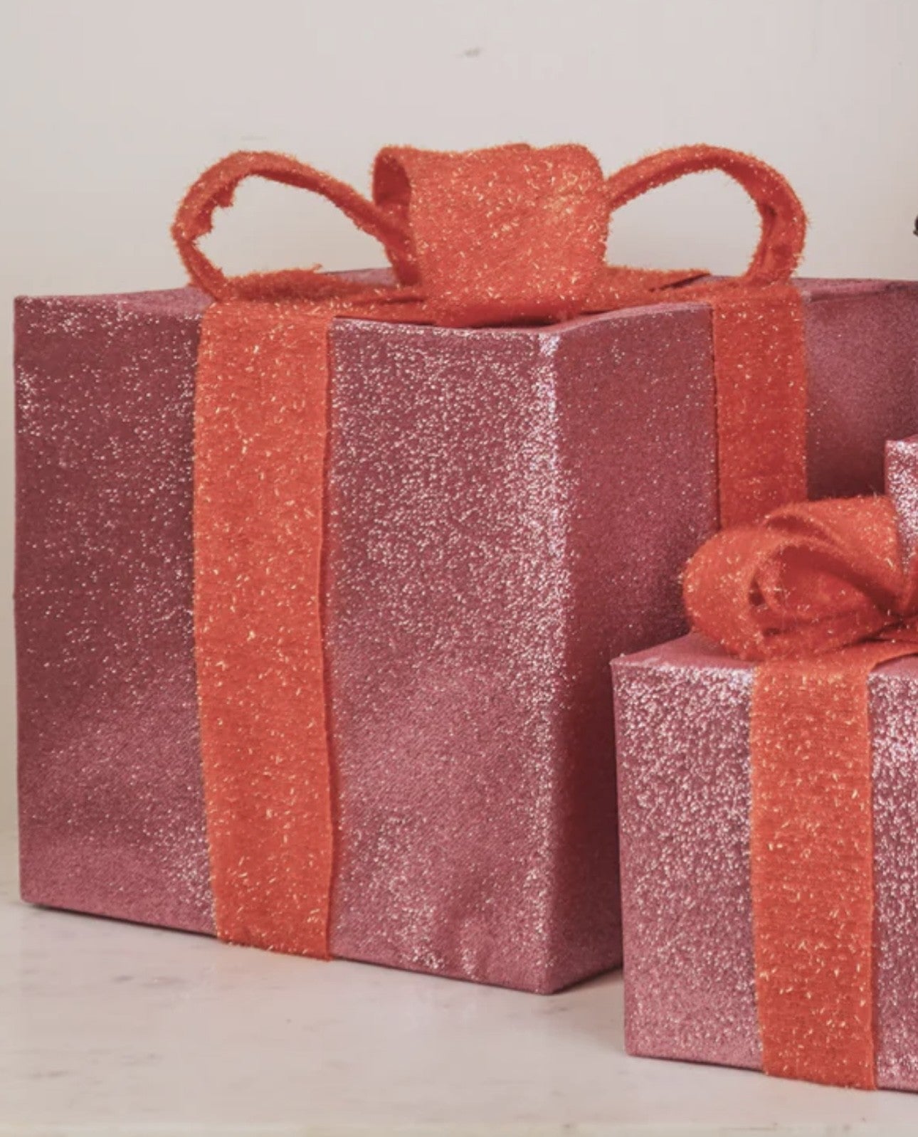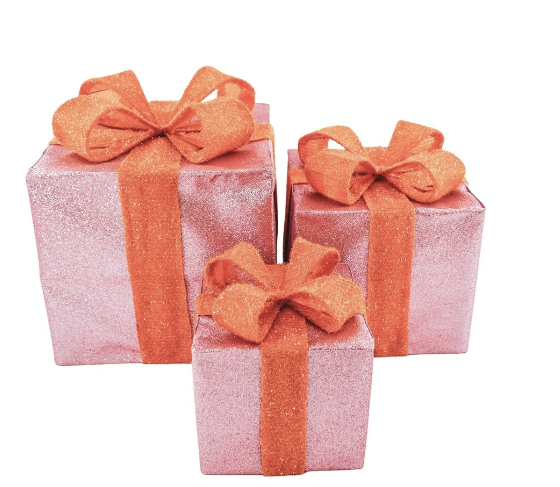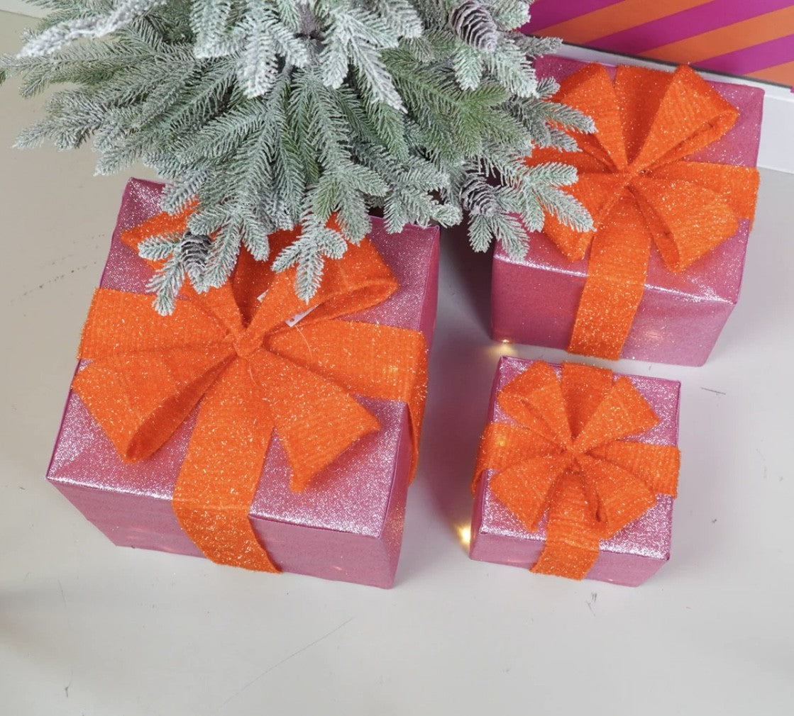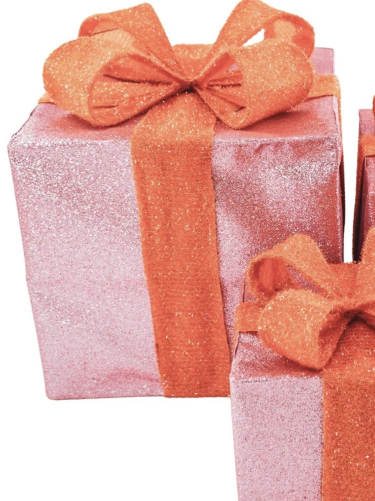 Her er de skønneste led gaver med sløjfer. Gaverne er hule indeni, hvor du finder led lysene. Lyset giver et behageligt varmt lys. Gaverne er dekoration alene, eller du kan gemme din gave til modtageren indeni. Brug dem som pynt under juletræet, eller brug dem borddækningen, også på fødselsdagsbord.