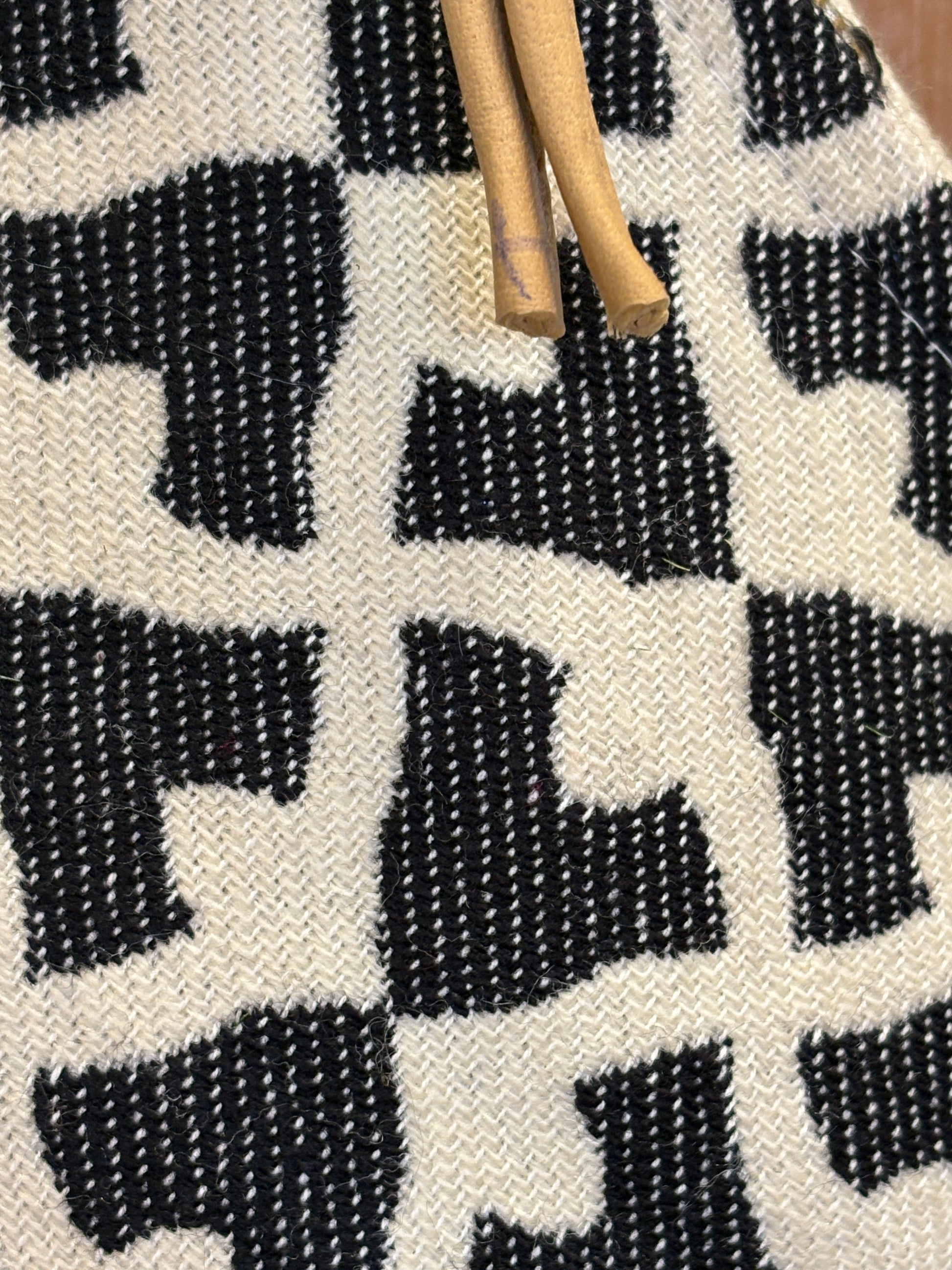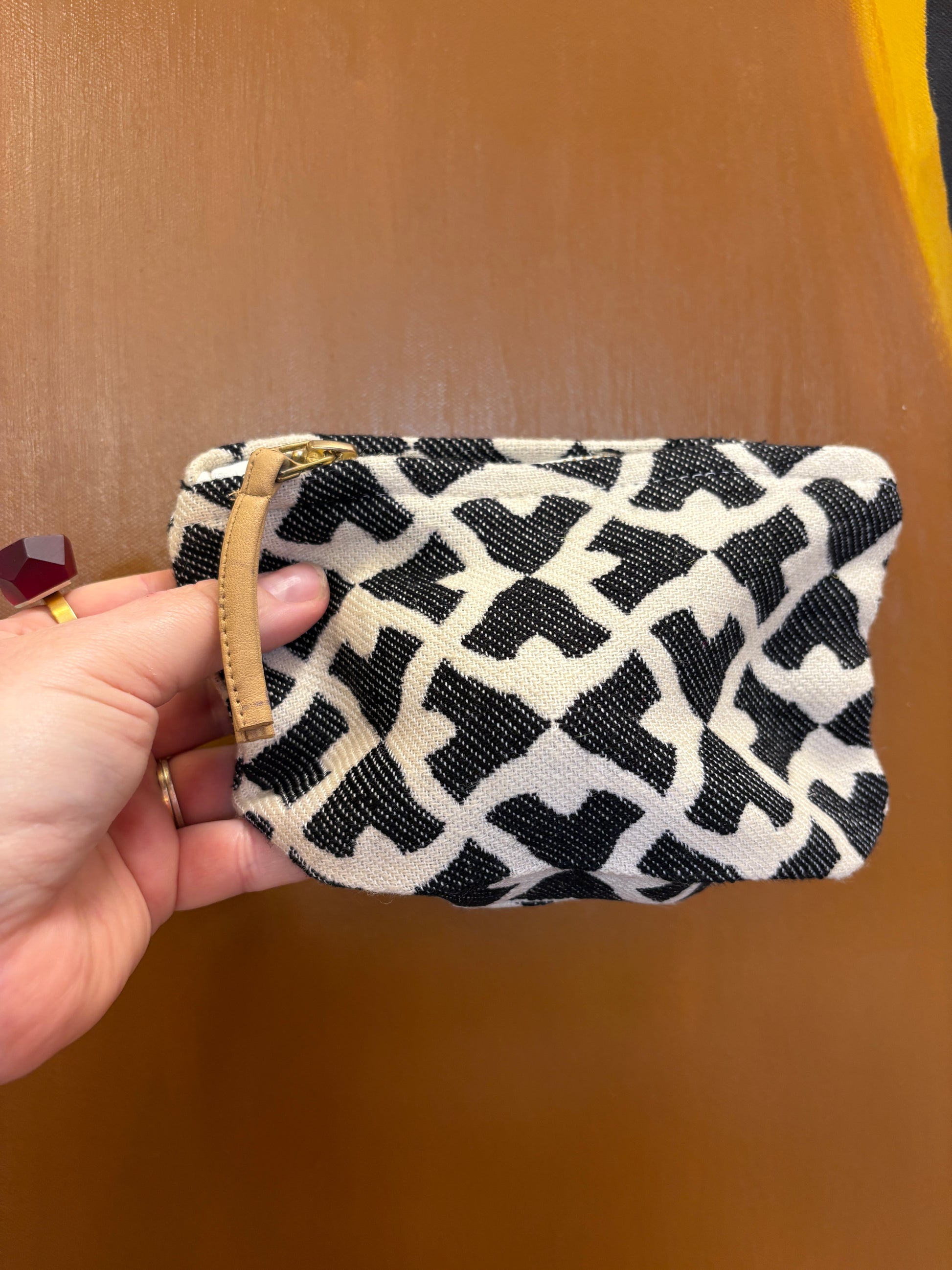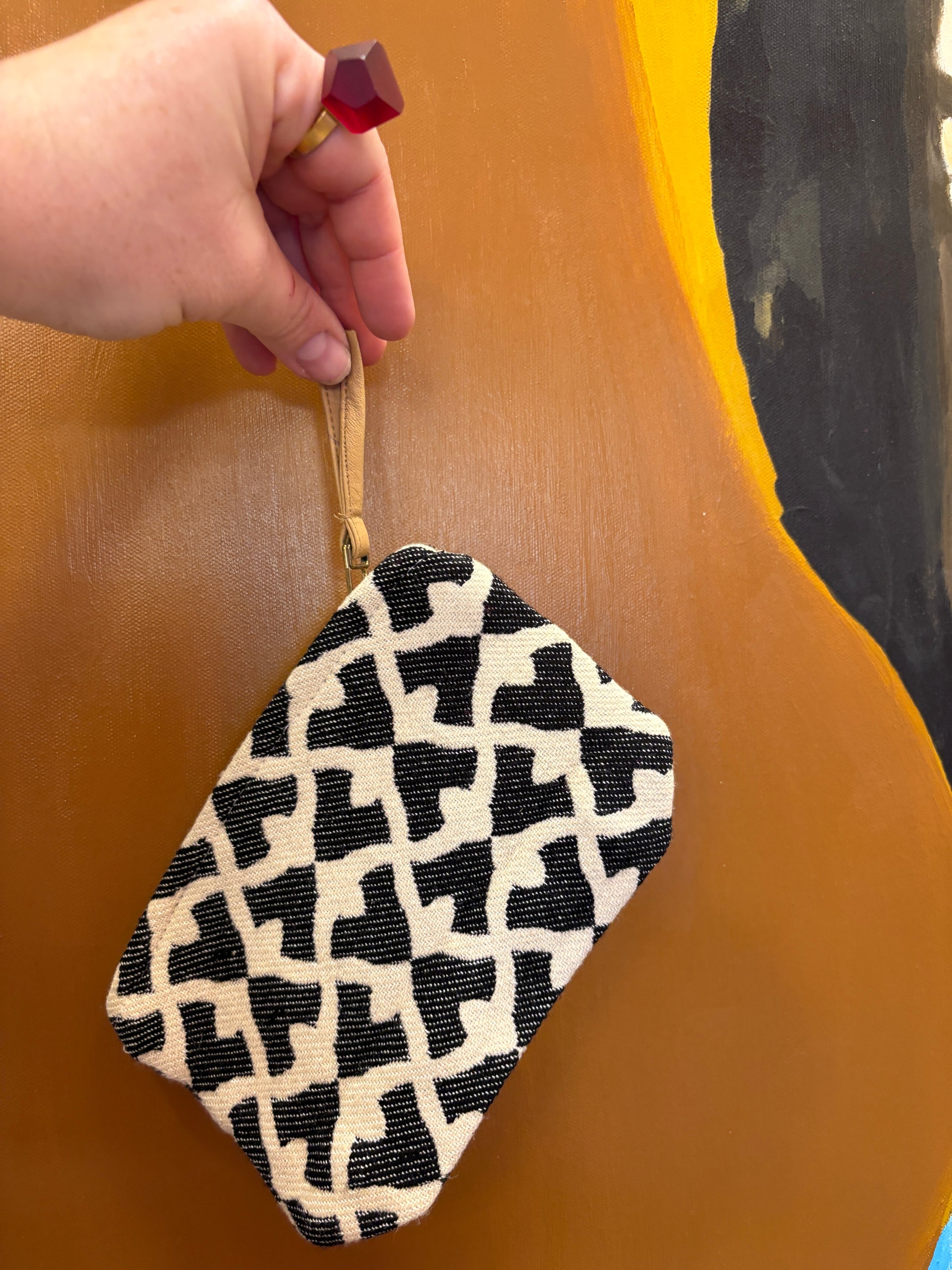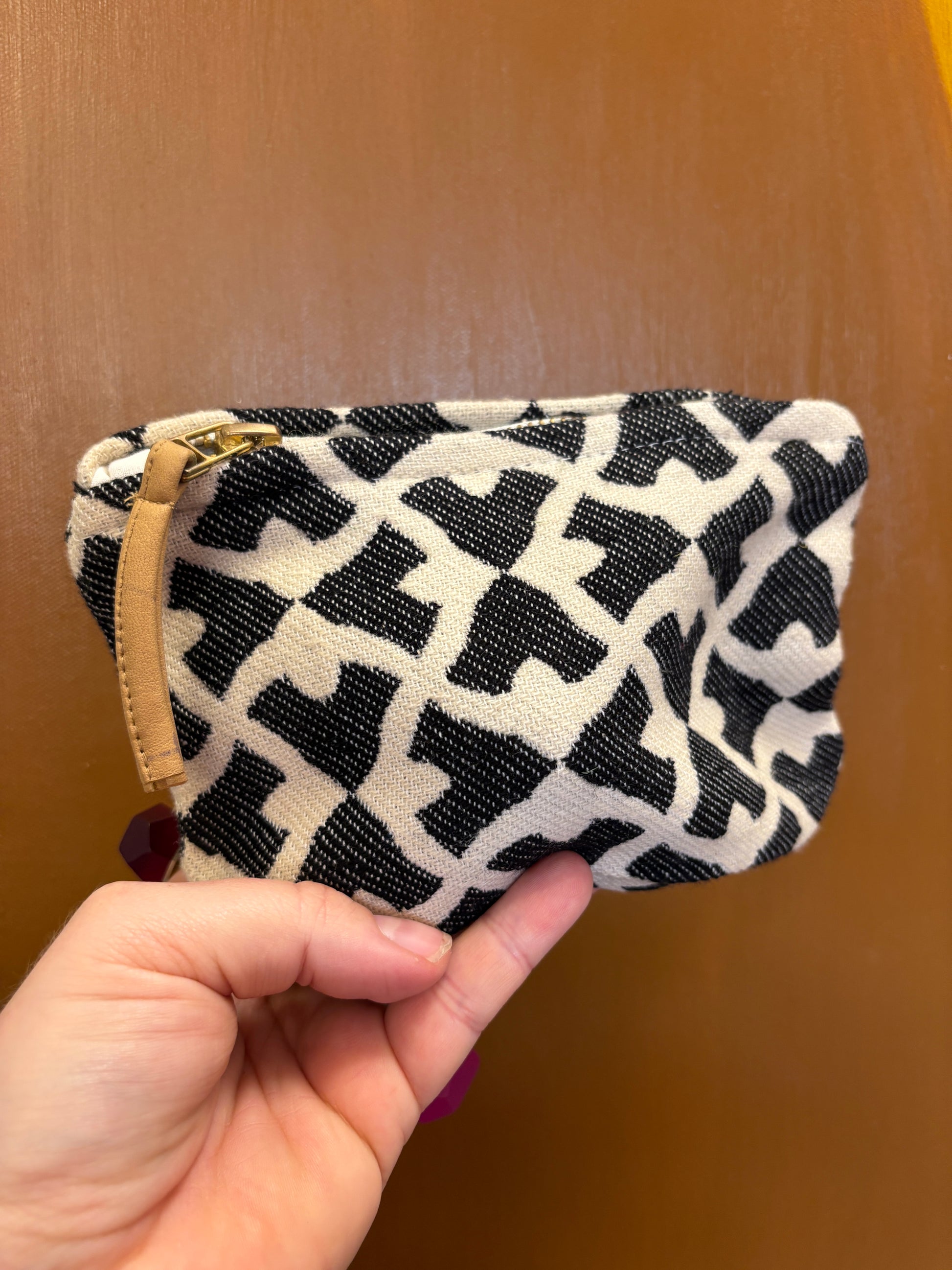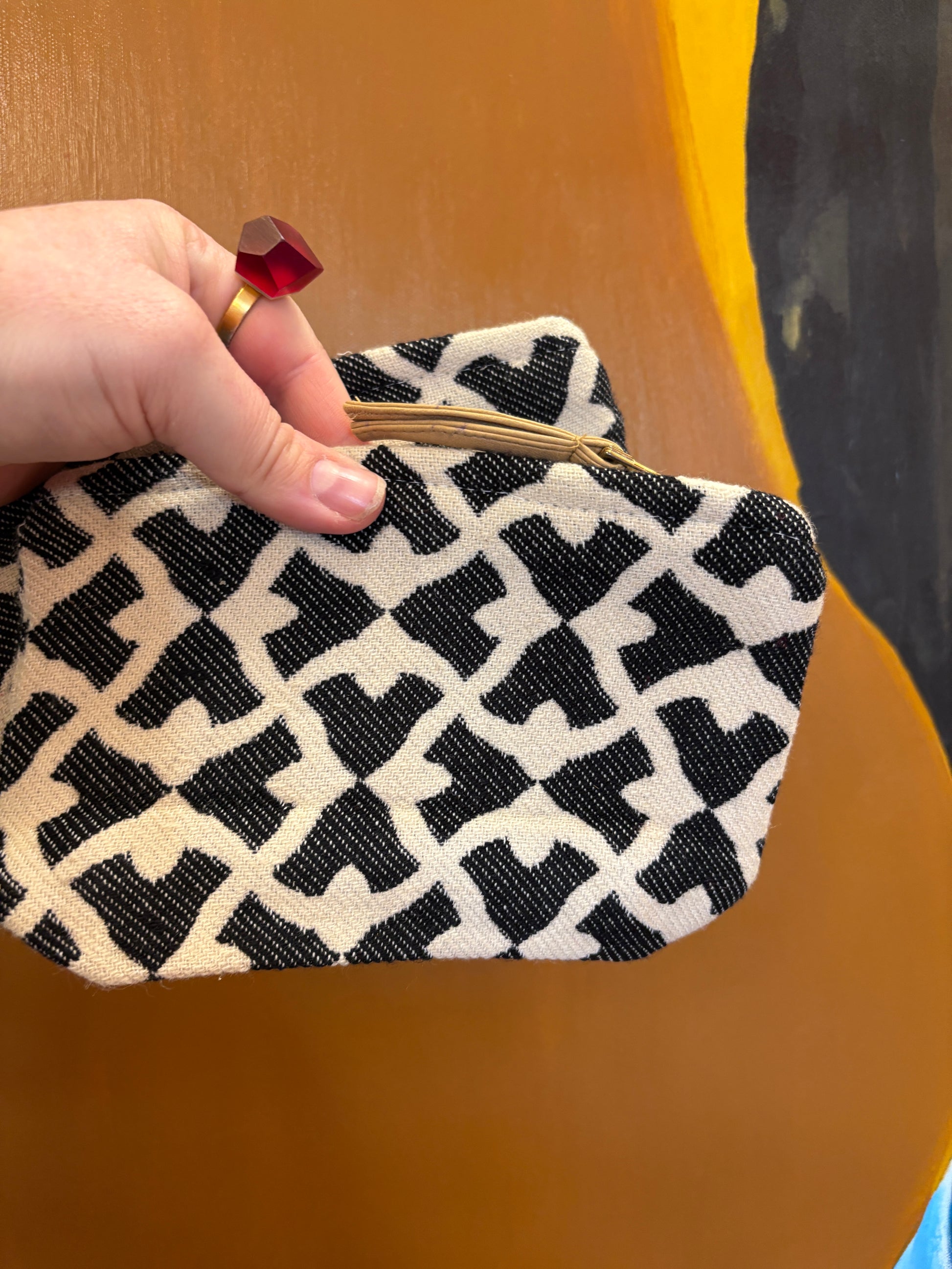 Lille clucht i hvid med sort mønster | 18 x 14 cm.