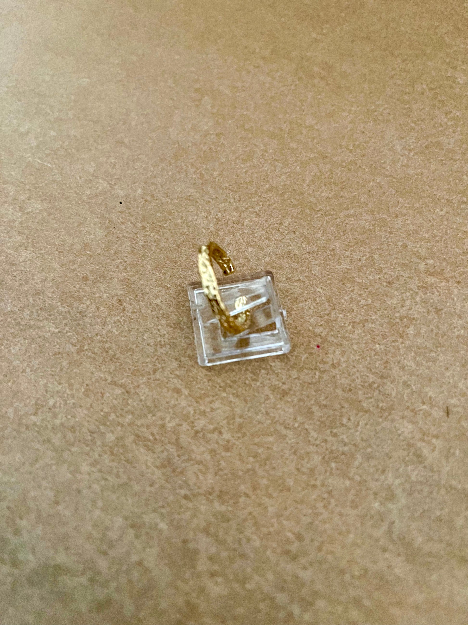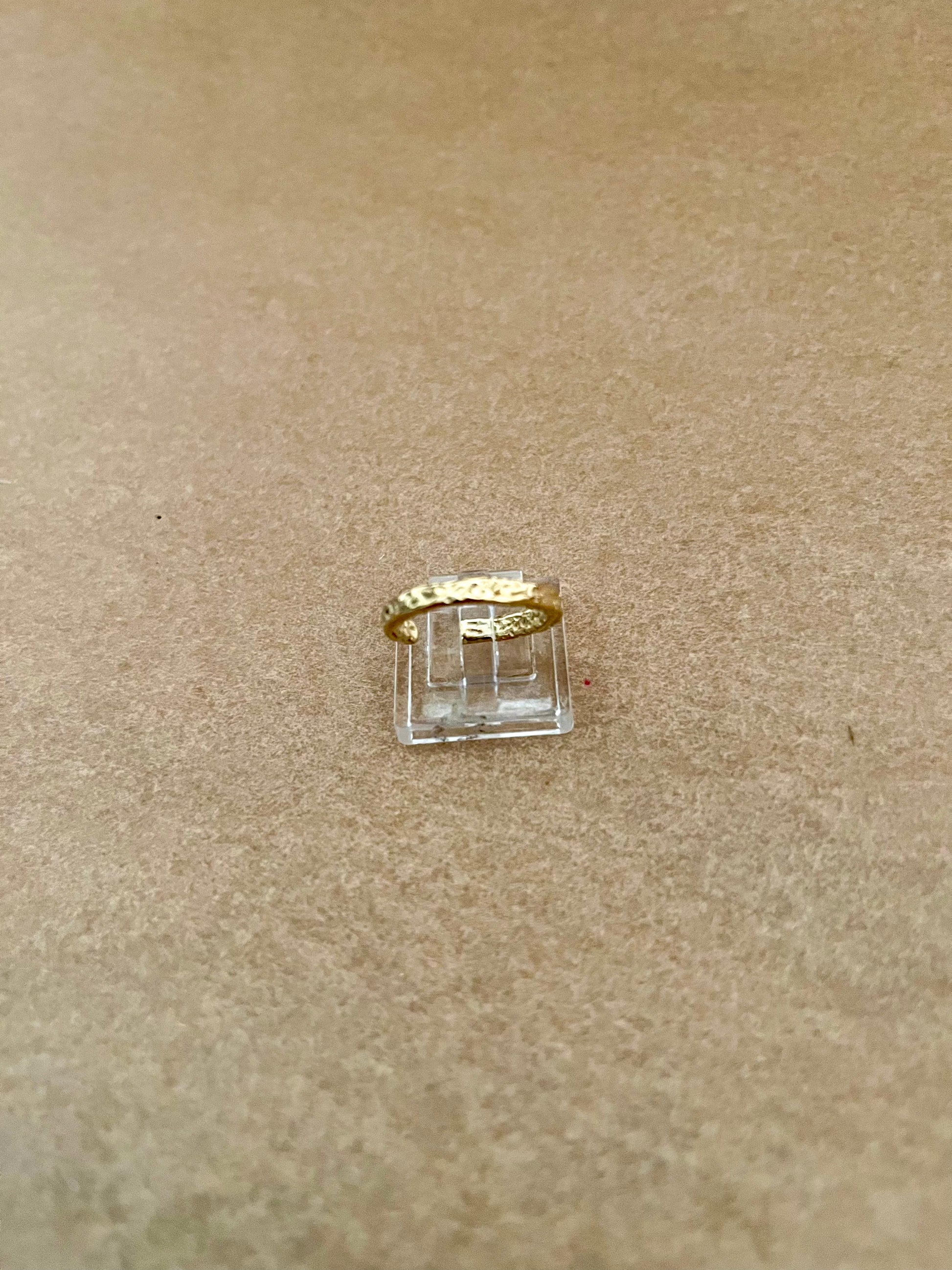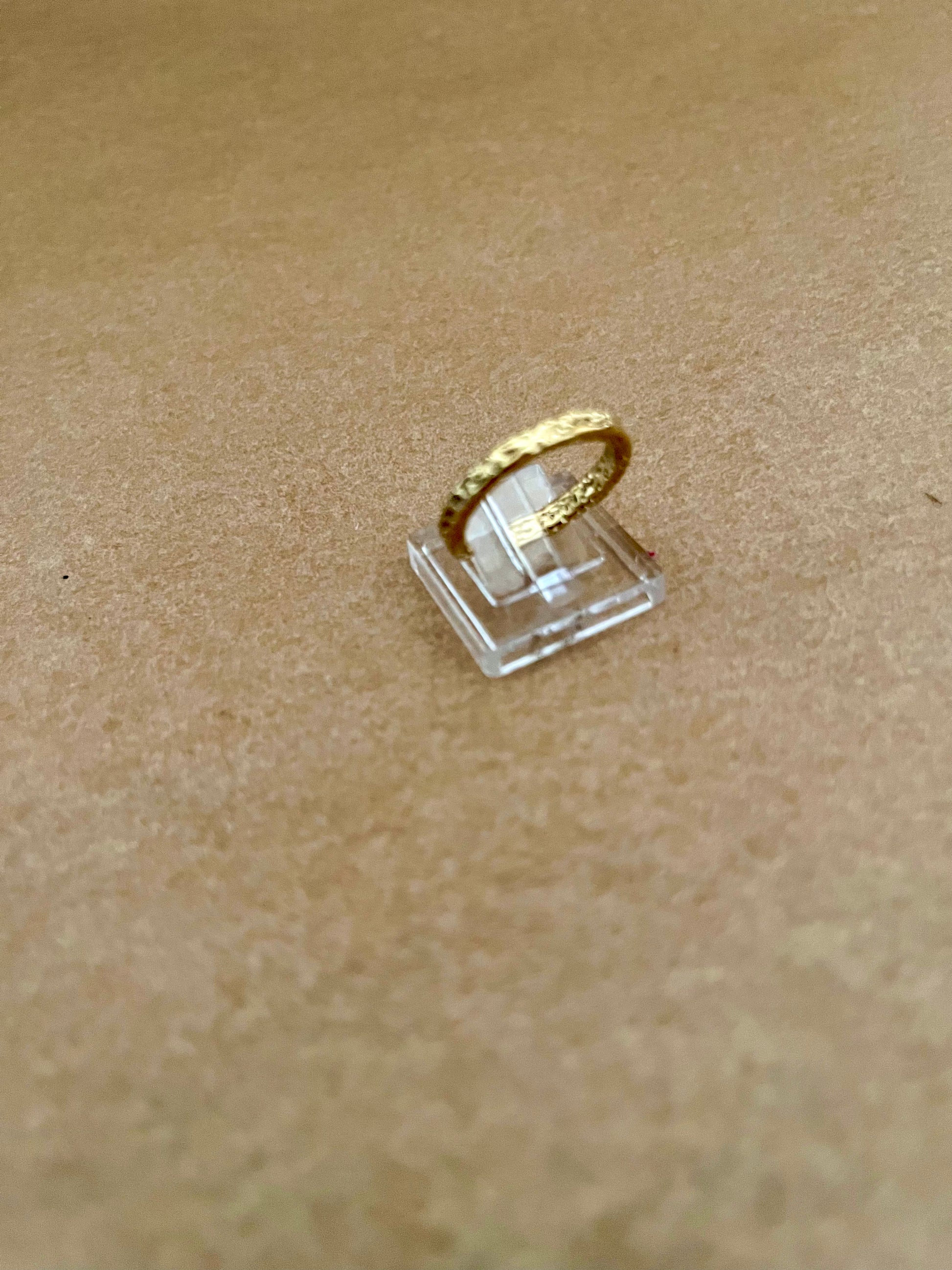 Skøn åben ring med tekstur. Ringen er i kirurgisk stål med 14 karat forgyldning.