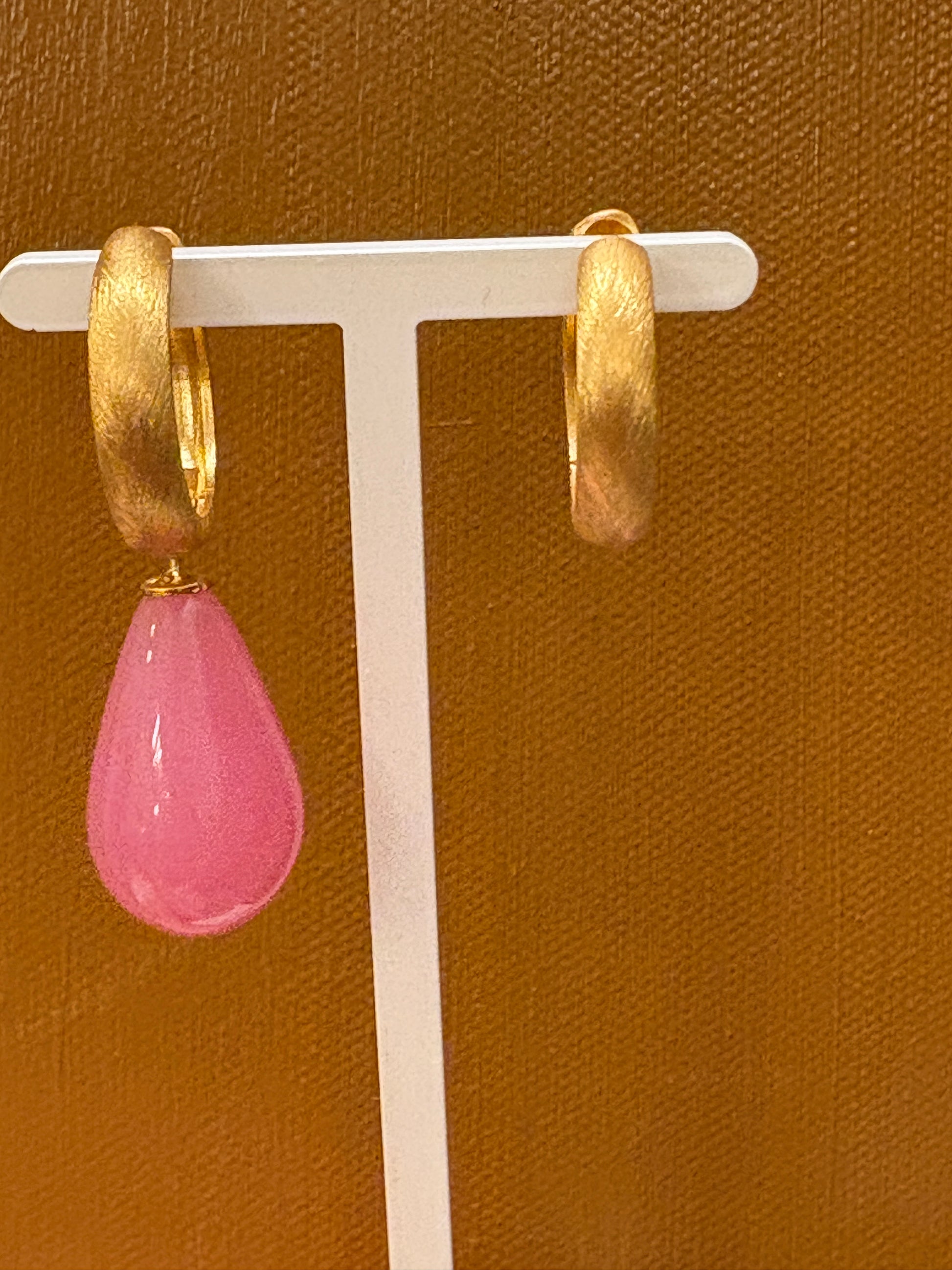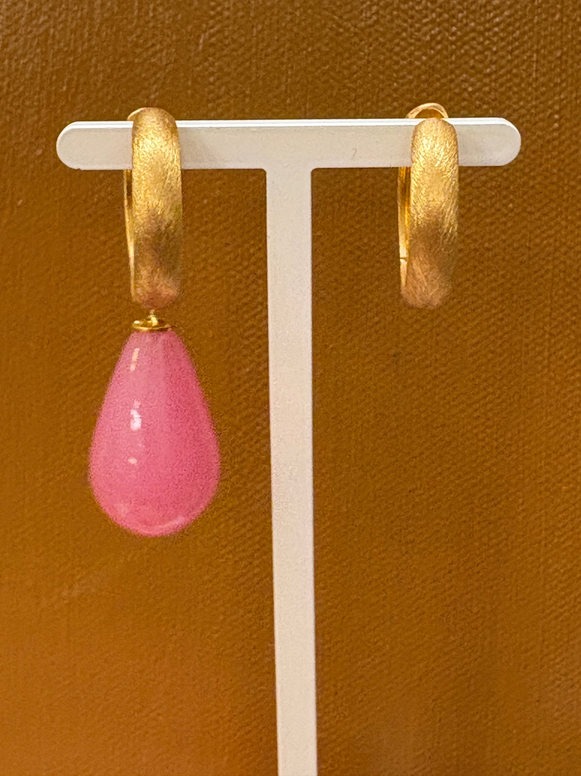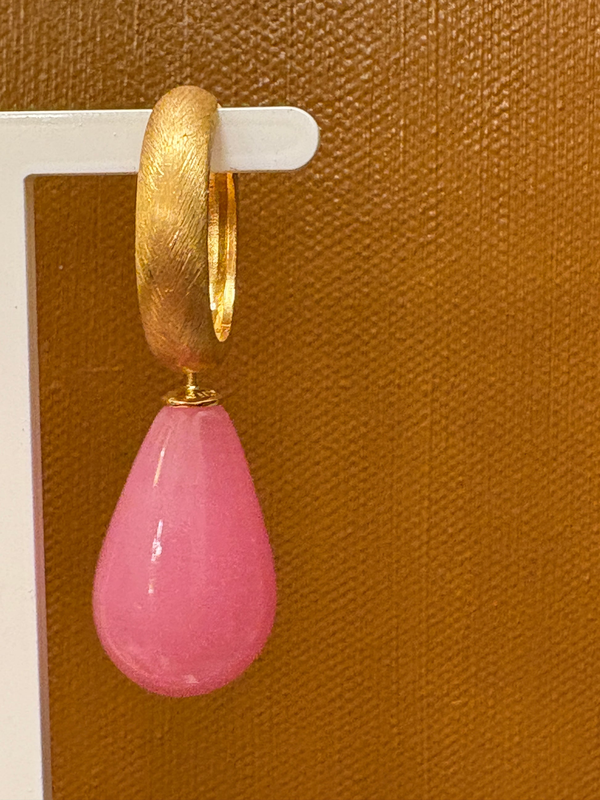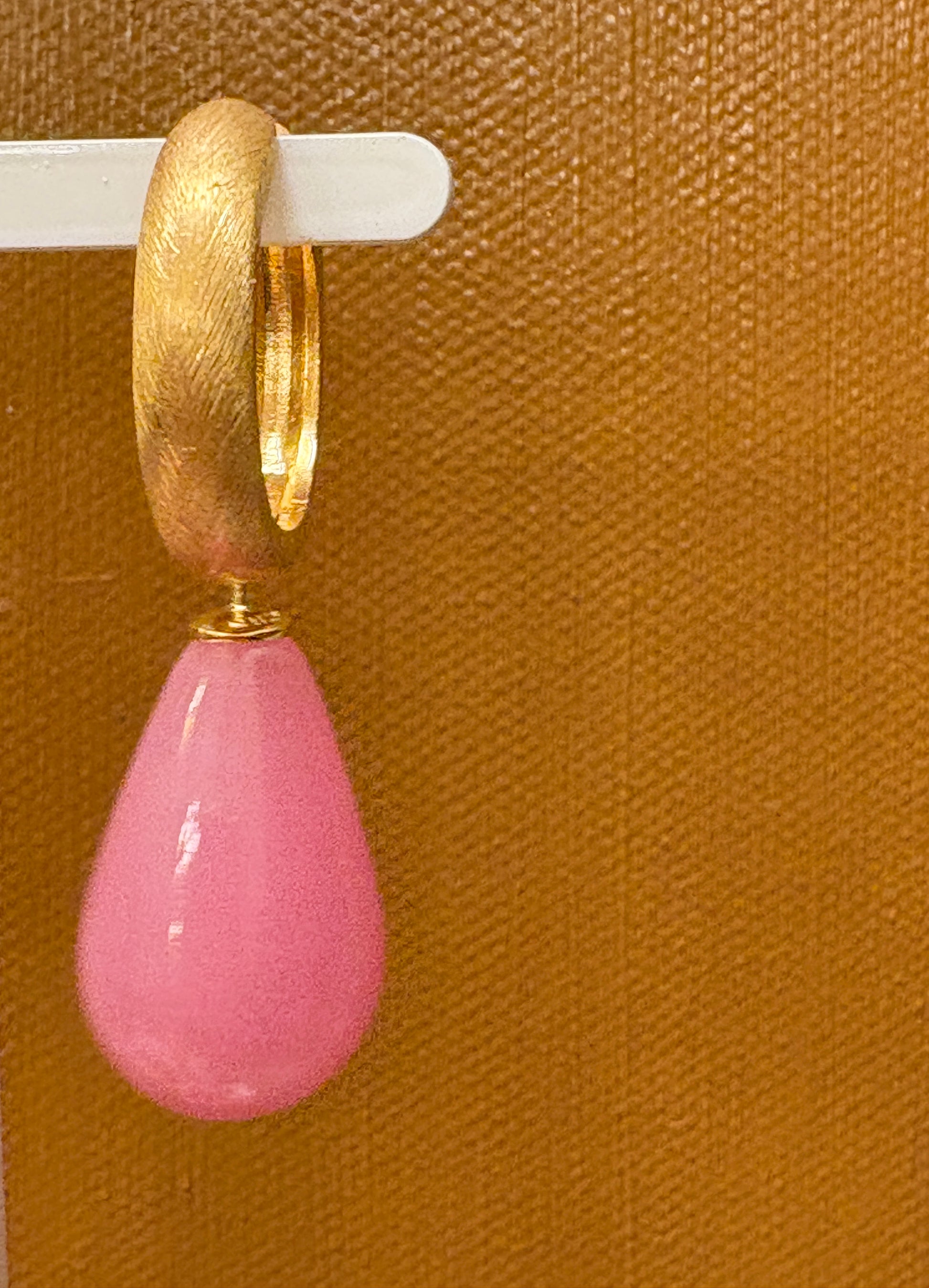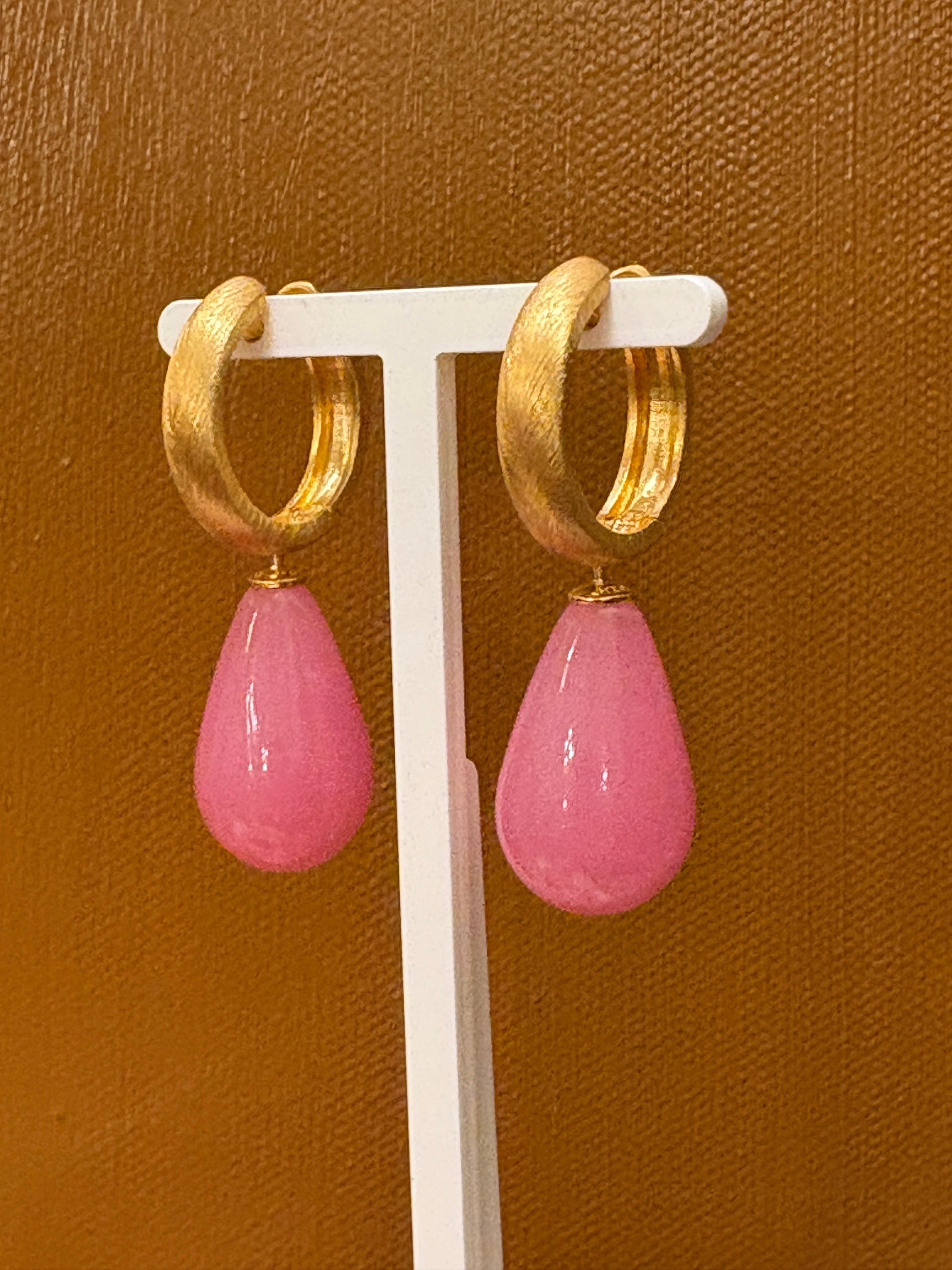 Rosa glasdråbe forgyldt top 24x12 mm
