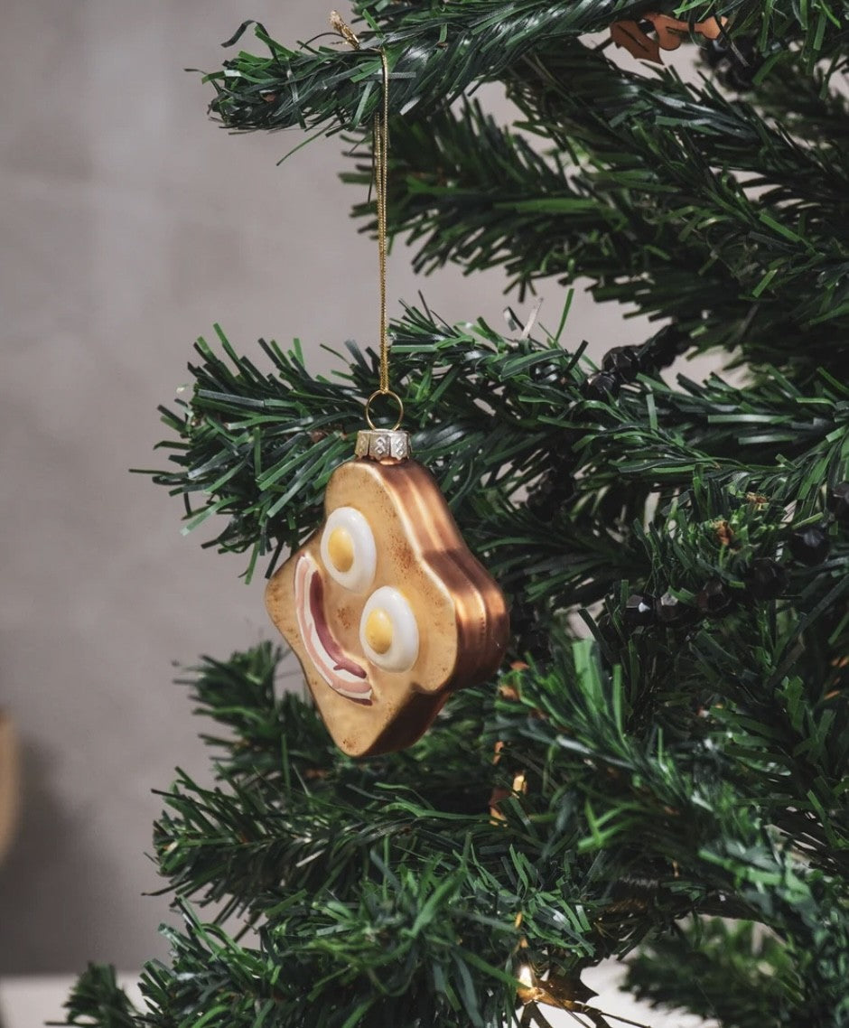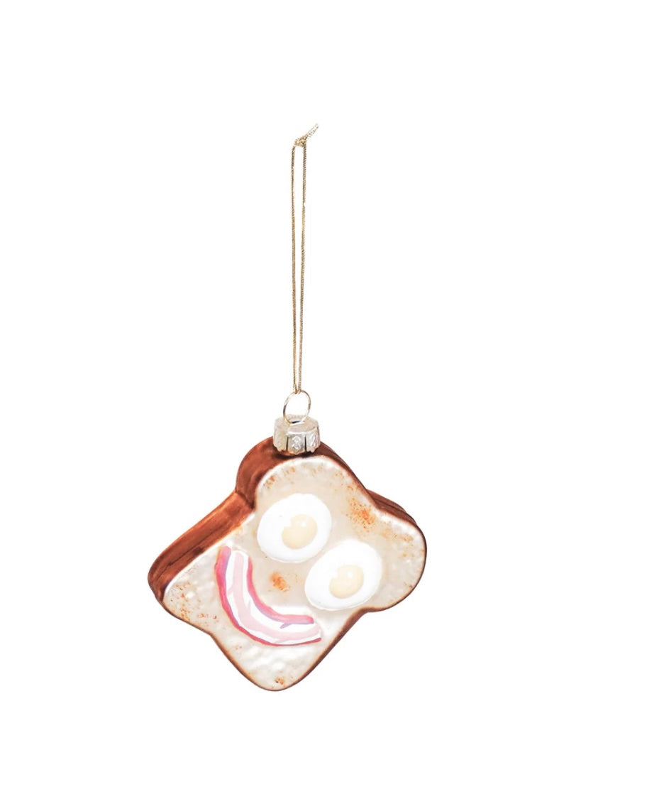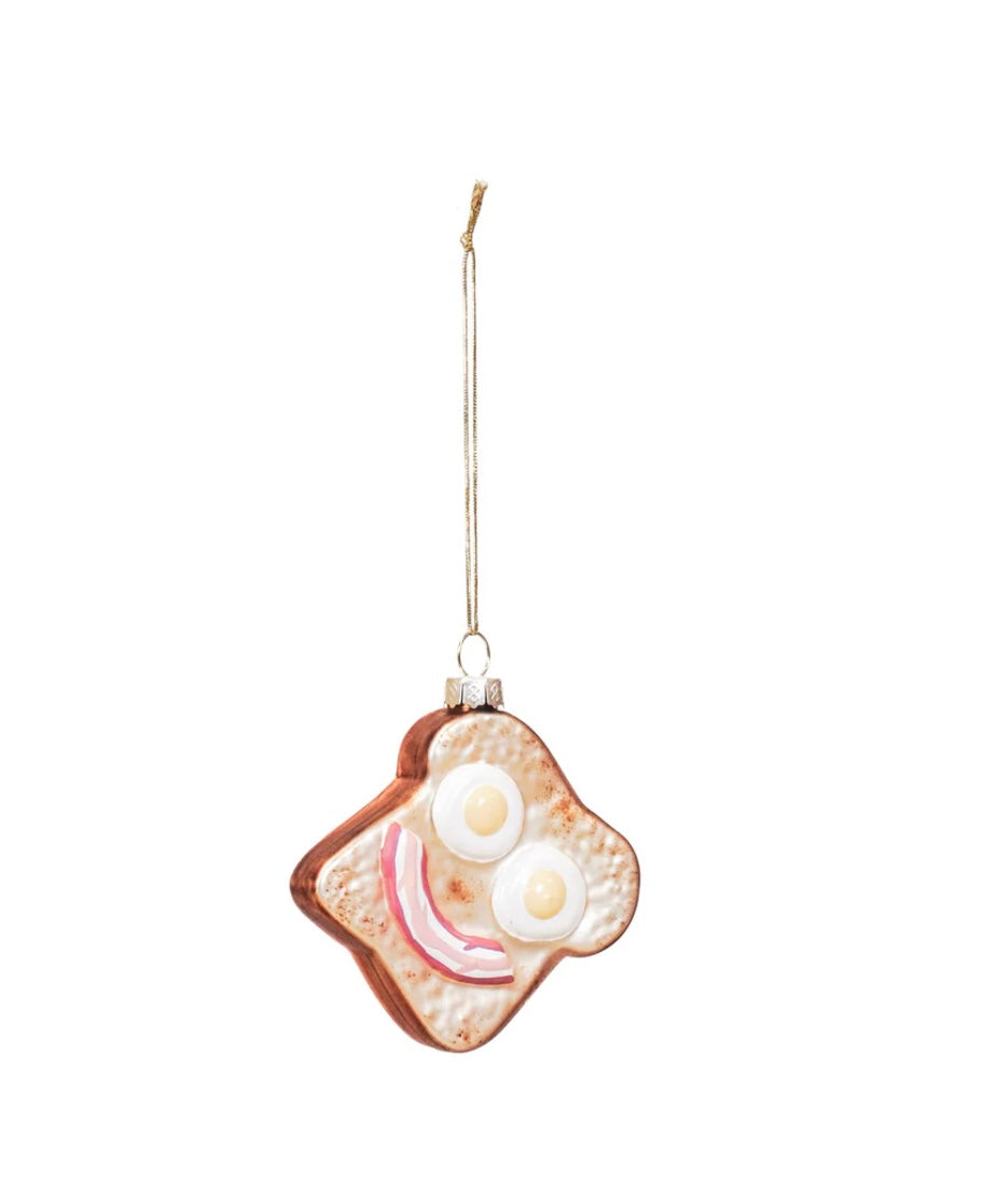 Så er der serveret jule morgenmad, med dette skønne glas ophæng lavet som en toast med bacon og spejlæg.