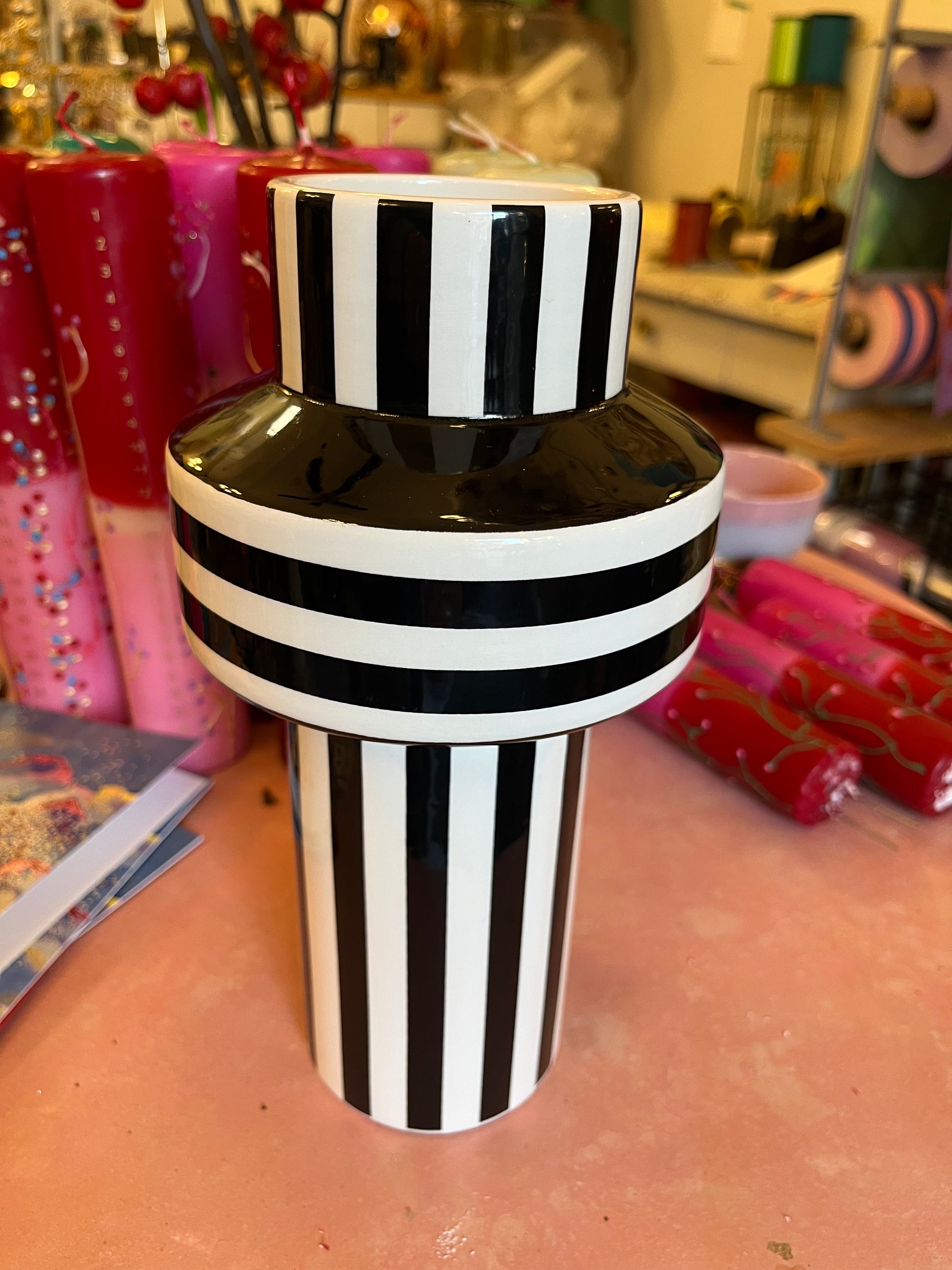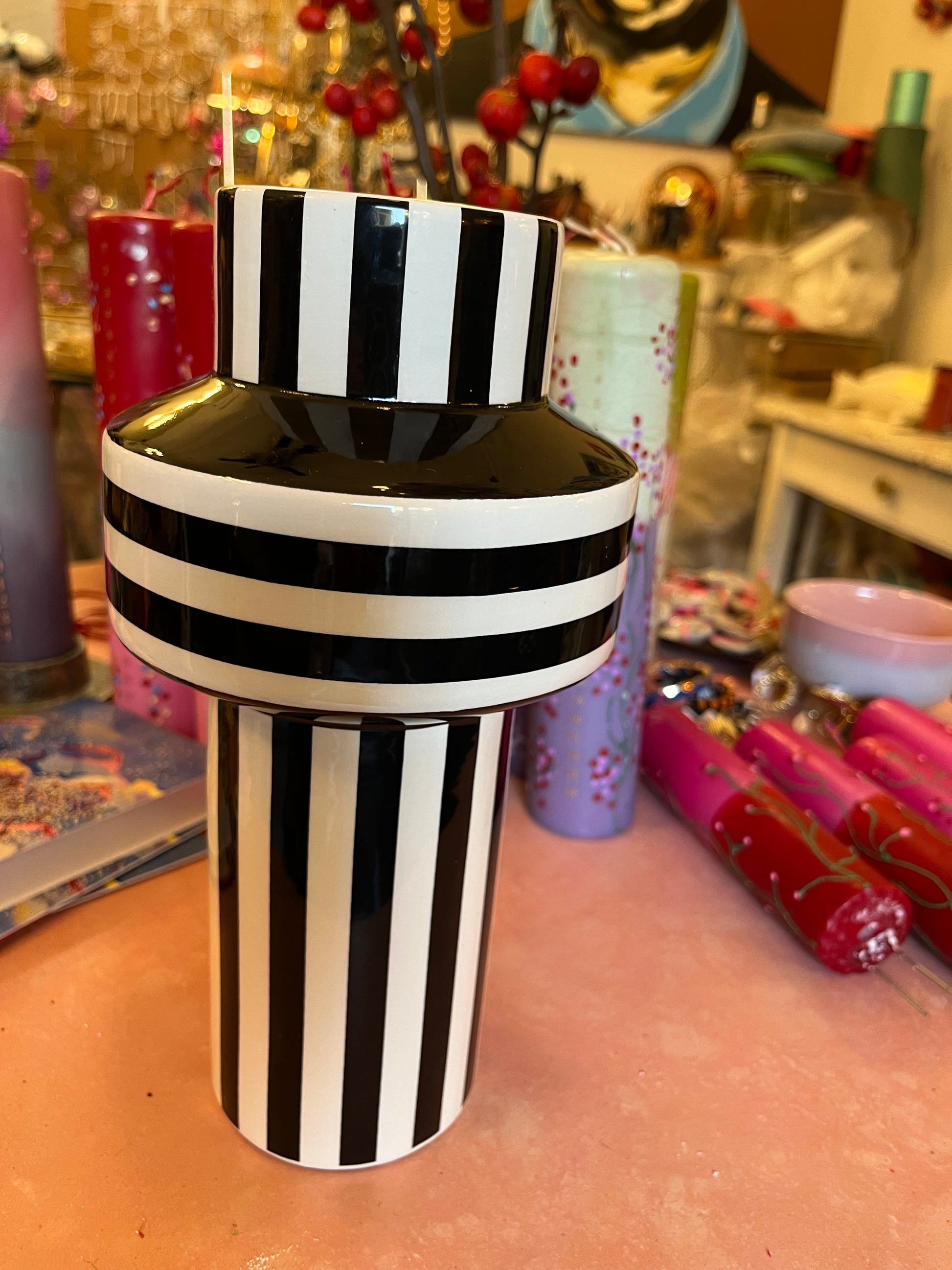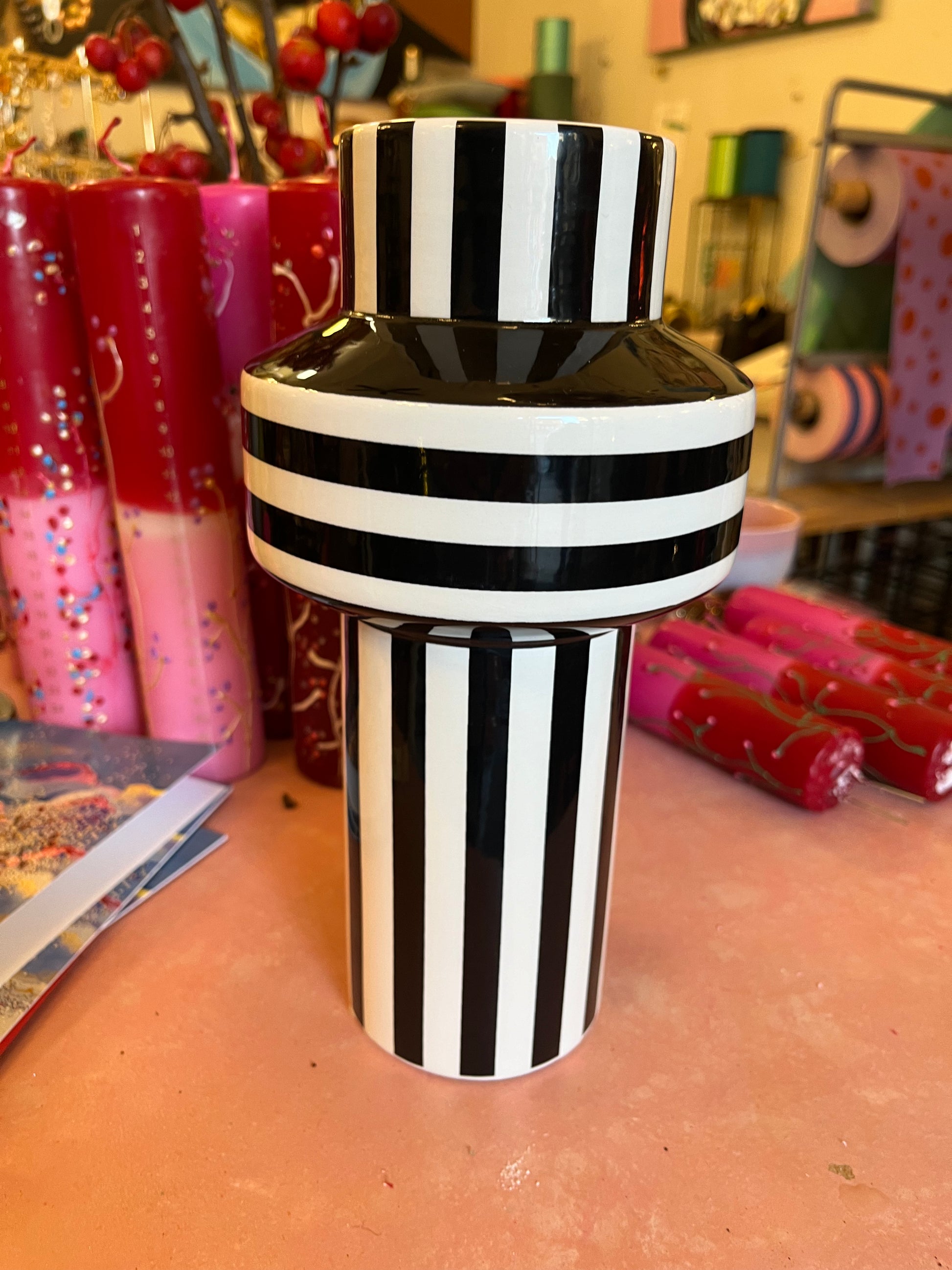 Endnu en vase med striber. Den slanke facon gør vasen perfekt til lange enke stilke, men vasen er ligeså smuk uden indhold.